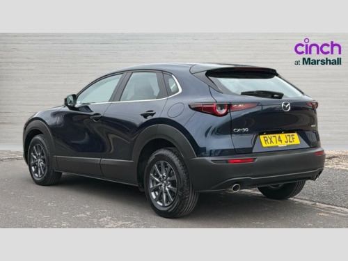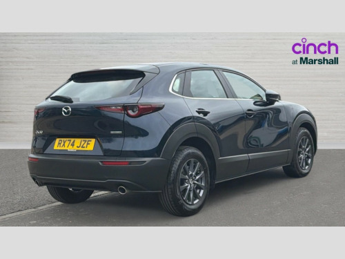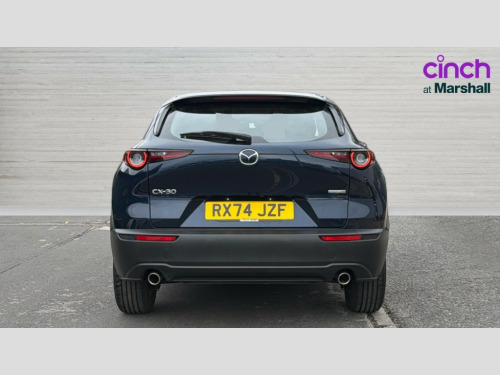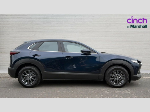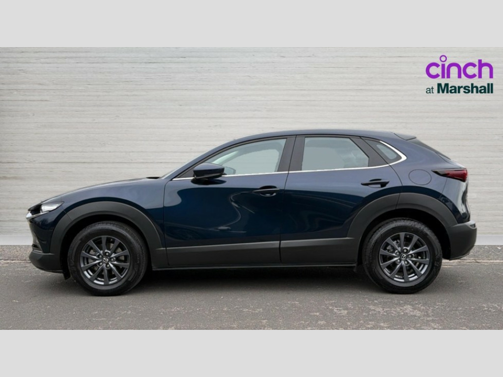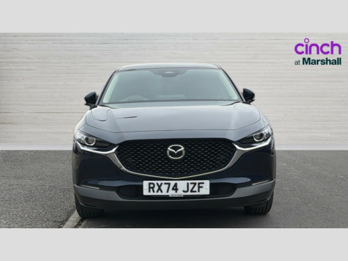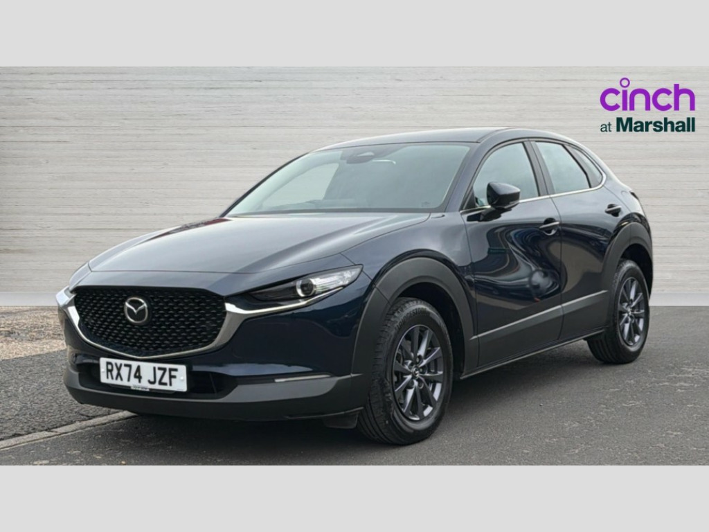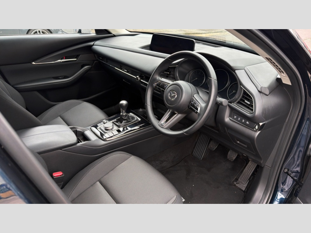 Mazda Cx-30 2.5 e-Skyactiv G MHEV [140] Centre-Line 5dr 10.25" display with Mazda Connect infotainment, 7" TFT Colour driver instrument panel display, Adaptive cruise control (Mazda radar cruise control), Blind spot monitoring with rear cross traffic alert, Driver attention alert system, E-call with GPS, Emergency stop signalling system, Engine start/stop button, Front and rear parking sensors, Integrated Alexa Voice Assistant, Integrated bluetooth, Integrated Mazda navigation system, Intelligent speed assist, Lane keep assist system (LAS) with Lane departure warning system (LDWS), Mazda connected services, PAS, Qi wireless charging, Reversing camera, Service indicator, Tailgate, Traffic sign recognition, Trip computer, Windscreen projected colour active driving display (HUD), Wireless Apple CarPlay/Android Auto, Cylinder Deactivation, i-stop, 2 x USB Type-C inputs, AM / FM / DAB radio with 8 speakers, Multimedia Commander including separate volume dial, Steering wheel mounted audio/bluetooth controls, B-pillar and C-pillar garnishes in satin black finish, Auto dimming driver's door mirror, Auto dimming rear view mirror, Body coloured, electrically adjustable, heated auto power folding door mirrors with integrated indicators, Chrome finish signature wing in front grille, Coming/leaving home lighting function, Dual bright finish exhaust tip trim, Dusk sensing headlights, Electric front/rear windows with one touch auto up/down, Front kodo turn signal, Gloss black rear roof spoiler, LED auto headlight levelling, LED headlights with halogen daytime running lights and high beam control, LED rear combination lights, Rain sensing front wipers with adjustable speed and intermittent wipe, Rear fog lights, Rear side wing doors, Rear wiper, Satin black front grille, Third brake light, 12V power outlet in centre console, 3 seat bench in 2nd row, 60/40 split fold down rear seats, Cloth upholstery with interior accents, Dark cloth door panel inserts, Dashboard, door cards and front centre armrest in black cloth, Driver and front passenger visors with covered vanity mirror and driver ticket holder, Driver seat manual slide, recline, height and seat tilt adjust, Driver, front passenger and two rear door storage, Driver, Front passenger and two rear grab handles with coathooks, Dual zone climate control air conditioning with rear air vents, Folding rear centre armrest with two cup holders, Front and rear (x3) head restraints, Front and rear LED lighting, Front armrest, Front centre storage with two cupholders, Front passenger seatback pockets, Front passengers seat manual slide, recline and height adjustment, Gear shift indicator, Glovebox illumination, Heated front seats with 3 stage setting, ISOFIX child seat anchorage points attached on outer rear seats, Leather wrapped gear shift knob, Leather wrapped steering wheel with telescopic and tilt adjustment, LED luggage compartment lighting, Light roof headlining and pillars, Roof mounted sunglasses holder, Single front passenger seat, 3 point ELR front seat belts x2 with pretensioners, 3 point ELR rear seat belts, Anti-lock braking system (ABS), Drivers knee airbag, DSC - Dynamic Stability Control, Electronic parking brake with auto disengage function and auto hold function, Front and rear curtain airbags, Front dual stage driver and single stage front passenger airbags, Front passenger airbag cut-off switch, Front side airbags, Front smart city brake support, G-Vectoring control plus, Hill launch assist, Manual child lock in rear doors, Mild Hybrid system with regenerative braking, Seatbelt reminder for driver/front passenger and rear seats, Traction control system (TCS), Tyre pressure monitoring system (TPMS), Remote central locking with deadlocking and automatic door lock when driving, Smart keyless entry, Thatcham accredited alarm and immobiliser, 16" Grey metallic alloy wheels, Emergency tyre repair kit