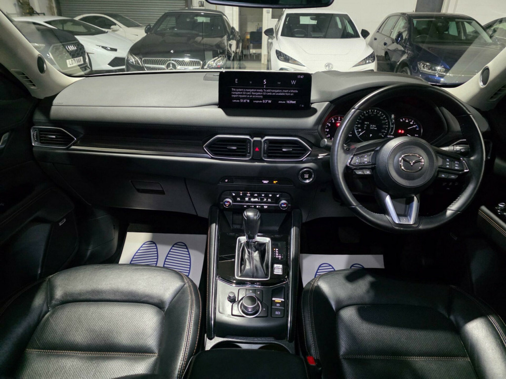 HPI Clear, Excellent condition, 1 Owner From New Apple CarPlay and Android AutoIntegrated Mazda Navigation System with 5-Years Free European Map Updates10.25in TFT Colour Centre Display with Mazda Connect InfotainmentSunroof - Power Tilt and SlideLane Keep Assist with Lane Departure Warning System7in Colour TFT DisplayReversing CameraPremium BOSE Sound SystemRear Parking SensorsFront Parking SensorsHeated Steering WheelABS - Anti Lock Braking SystemAdaptive Cruise ControlAdvanced Smart City Brake SupportAuto Dimming Rear View MirrorB-Pillar and C-Pillar Garnish - Gloss BlackBumpers - Front and Rear Body Coloured with Black Lower Bumper MouldingsConnected ServicesCruising Traffic Support - CTSDSC - Dynamic Stability ControlDashboard Panel - Black InlayDigital RadioDoor Panel Trim - Vinyl with Wood Grain Metal InlayDrive Mode SelectionDual Tailpipe - Chrome TipElectric Windows - Front and RearFlat Fit Cargo BoardFront Passenger Airbag Cut-Off SwitchGear Shift - Leather-WrappedHeadlights - Coming-Leaving HomeHeadlights - Dusk-Sensing LightsHeadlights - LED with Auto Headlight LevellingHeated Auto Power-Folding Door MirrorsHigh Beam ControlHill Hold AssistInterior LED LightingLED Rear Signature Combination LightsLED Signature Daytime Running LightsMultimedia CommanderPower LiftgateRear Roof Spoiler - Body ColouredRoof Headlining - Light - Ceiling and PillarsSmart Keyless EntryThatcham Accredited Alarm and ImmobiliserThree Height Adjustable Head RestraintsTyre Pressure Monitoring SystemUSB Connection - 2x Front and 2x Rear Inputsairbags, ABS, PAS, Spare key, 19in Alloy Wheels - Diamond Cut - Black ple carplay and android auto, integrated mazda navigation system with 5-years free european map updates, 10.25in tft colour centre display with mazda connect infotainment, sunroof - power tilt and slide, lane keep assist with lane departure warning system, 7in colour tft display, reversing camera, premium bose sound system, rear parking sensors, front parking sensors, heated steering wheel, abs - anti lock braking system, adaptive cruise control, advanced smart city brake support, auto dimming rear view mirror, b-pillar and c-pillar garnish - gloss black, bumpers - front and rear body coloured with black lower bumper mouldings, connected services, cruising traffic support - cts, dsc - dynamic stability control, dashboard panel - black inlay, digital radio, door panel trim - vinyl with wood grain metal inlay, drive mode selection, dual tailpipe - chrome tip, electric windows - front and rear, electronic parking brake with auto hold function, emergency stop signalling system - ess, emergency tyre repair kit, engine start-stop button, flat fit cargo board, front passenger airbag cut-off switch, gear shift - leather-wrapped, headlights - coming-leaving home, headlights - dusk-sensing lights, headlights - led with auto headlight levelling, heated auto power-folding door mirrors, high beam control, hill hold assist, interior led lighting, led rear signature combination lights, led signature daytime running lights, multimedia commander, power liftgate, rear roof spoiler - body coloured, roof headlining - light - ceiling and pillars, smart keyless entry, thatcham accredited alarm and immobiliser, three height adjustable head restraints, tyre pressure monitoring system, usb connection - 2x front and 2x rear inputs, 19in alloy wheels - diamond cut - black