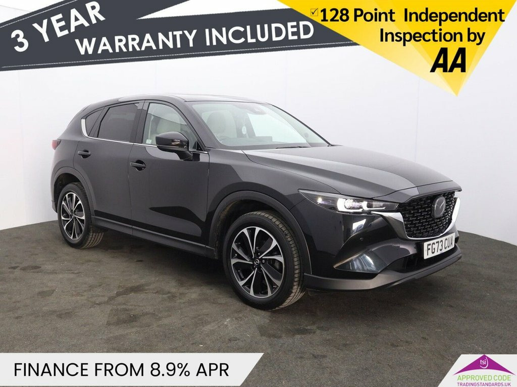 This 2023 Mazda CX-5 e-SKYACTIV G Exclusive-Line is a superb example, having had only one owner since new. This stylish SUV boasts a 2.0 litre petrol engine and meets Euro 6 emissions standards. For your peace of mind, the MOT is long. Inside, you'll find a wealth of desirable features, including LED headlights with automatic levelling, an integrated Bluetooth system for seamless connectivity, and a heated steering wheel for added comfort on colder days. The driver's seat offers 8-way electric adjustment with memory settings, ensuring your perfect driving position is always maintained. Furthermore, the premium BOSE sound system provides an exceptional audio experience. The CX-5 Exclusive-Line stands out with its generous boot space, offering ample room for all your luggage and shopping needs. Its low insurance group rating also makes it an economical choice for many drivers. These highlights demonstrate how this particular Mazda CX-5 offers a superior ownership proposition compared to other vehicles in its class, combining practicality, comfort, and advanced technology in one impressive package. 10.25in TFT Colour Centre Display with M, 12V Electrical Power Outlet, 7in Colour TFT Display, Apple CarPlay and Android Auto, Connected Services, Digital Radio, Integrated Bluetooth System, Integrated Mazda Navigation System with , Luggage Compartment - Power Outlet, Premium BOSE Sound System, QI Wireless Mobile Phone Charging, Shark Fin Antenna, USB Connection - 2x Front and 2x Rear In, 19in Alloy Wheels - Diamond Cut - Black, B-Pillar and C-Pillar Garnish - Gloss Bl, Body Coloured Door Mirrors, Bumpers - Front and Rear Body Coloured w, Dual Tailpipe - Chrome Tip, Electric Windows - Front and Rear, Gloss Black Finish Grille, Heated Auto Power-Folding Door Mirrors, Privacy Glass - Rear and