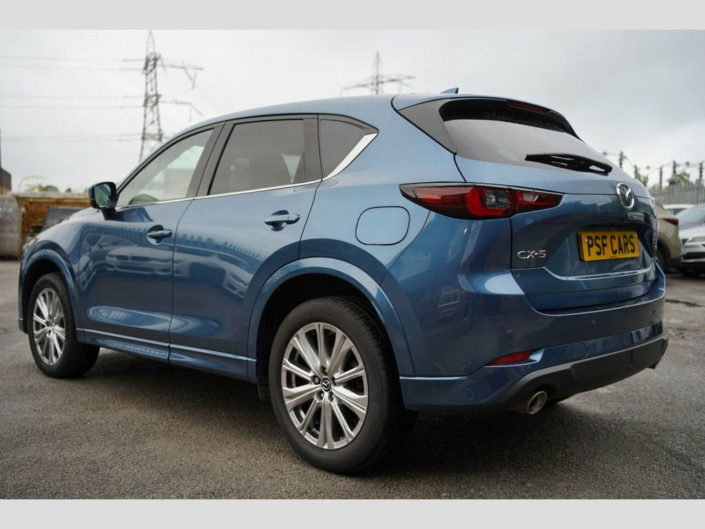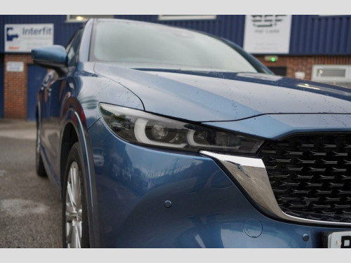 Service history 22/07/2025 @25676 Miles, 18/09/2025 @5 Miles The Mazda CX-5 2.0 e-SKYACTIV G MHEV Takumi combines elegance, performance, and advanced technology, offering a driving experience that balances style, comfort, and efficiency. From its striking exterior design to its meticulously crafted interior, the CX-5 stands out as one of the most refined and versatile SUVs in its class. The Takumi trim elevates the cabin with premium materials, including soft-touch surfaces, leather upholstery, and sophisticated metallic accents, ensuring that every journey feels luxurious and comfortable. Under the bonnet, the 2.0-litre e-SKYACTIV G petrol engine with mild-hybrid (MHEV) technology provides responsive power while optimising fuel efficiency and reducing emissions. Paired with a smooth 6-speed manual gearbox, the CX-5 delivers a connected and engaging driving experience, whether navigating city streets or cruising on motorways. The mild-hybrid system enhances efficiency without compromising on performance, making this SUV both environmentally conscious and exhilarating to drive. The exterior of the CX-5 is both dynamic and stylish, featuring Mazda's signature Kodo design language. Its bold front grille, sleek LED headlights, flowing body lines, and elegant alloy wheels create a confident presence on the road. Practical features such as rain-sensing wipers, rear parking sensors, and automatic lights add convenience and safety to everyday driving, while the spacious boot a Deep Crystal Blue, 10.25in TFT Colour Centre Display with M, 12V Electrical Power Outlet, 19in Alloy Wheels - Exclusive Bright, 360 Degree View Monitor, 7in Colour TFT Display, ABS - Anti Lock Braking System, Adaptive Cruise Control, Advanced Smart City Brake Support, Airbags - Front Dual Stage Driver and Si, Apple CarPlay and Android Auto, B-Pillar and C-Pillar Garnish - Gloss Bl, Blind Spot Monitoring with Rear Cross Tr, Body Coloured Door Mirrors, Connected Services, DSC - Dynamic Stability Control, Dashboard Panel - Real Wood Inlay, Digital Radio, Door Panel Trim - Vinyl with Real Wood I, Door Pockets - Driver and Front Passenge, Driver Attention Alert - DAA, Drivers Seat - Power Slide -
