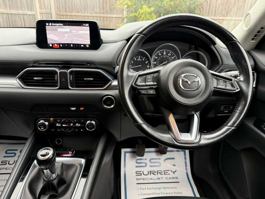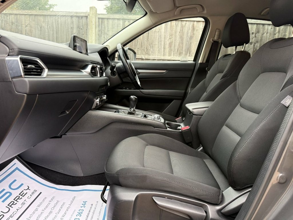 Surrey Specialist Cars are proud to present our lovely Mazda CX-5 SE-L. This amazing car comes with Service History, finished in stunning metallic grey with grey contrast interior. The car has a MOT until January 2026 so it is ready to go. The 2L Petrol engine offers superb economy at over 56 MPG on combined cycle. Features Include Multifunction Steering Wheel, Trip Computer, Satellite Navigation,  Parking Sensors,  Cruise Control, Speed Limiter,   Stereo/Phone Control, FM Radio, Bluetooth Audio, Apple CarPlay, Android Auto,  two USB Inputs,  Dual Zone Climate Control, Heated Rear and Front Screen, CD Player, 6 Speed Manual Gearbox, Electronic Hand Brake, 17 Inch Alloy Wheels and two Remote Control Keys to name a few.  17in Alloy Wheels, 7in Colour Touch Screen Display, ABS - Anti Lock Braking System, AM-FM-DAB Radio - Single CD Player-MP3 A, AUX and USB Input, Air Conditioning - Dual Zone Climate Con, Auto Dimming Rear View Mirror, Bumpers - Body Coloured, Cruise Control with Manual Speed Adjustm, Dome Interior Courtesy Light with Integr, Door Mirrors - Electrically Adjustable -, Door Pockets - Driver - Front Passenger , Dual Exhaust System, Dual Front Airbags, Dusk Sensing Automatic Headlights, Dynamic Stability Control with Traction , Electric Windows - Front and Rear with O, Electronic Parking Brake with Auto-Disen, Emergency Tyre Repair Kit, Engine Start-Stop Button, Front Centre Console with Storage