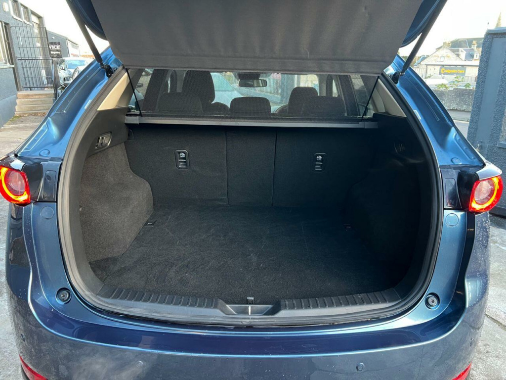 . 10.25in TFT Colour Centre Display with Mazda Connect Infotainment, 17in Alloy Wheels - Grey Metallic, ABS - Anti Lock Braking System, AM-FM-DAB Radio - Audio System with 6 Speakers, Advanced Smart City Brake Support, Apple CarPlay and Android Auto, Auto Dimming Rear View Mirror, Auxiliary - AUX - and Two USB Input, Blind Spot Monitoring with Rear Cross Traffic Alert, Bumper - Front Body Coloured with Black Lower Mouldings, Bumper - Rear Body Coloured with Black Lower Moulding, Colour TFT Display with Traffic Sign Recognition, DSC - Dynamic Stability Control, Digital Instrument Cluster, Door Mirrors - Electrically Adjustable - Heated - Auto Power Folding with Integrated Indicator Lights, Door Pockets - Driver and Front Passenger, Dual Chrome Exhaust Tailpipe, Dual Front Airbags, Dual Zone Climate-Controlled Air-Conditioning with Rear Air Vents, EBD - Electronic Brakeforce Distribution, Electric Windows - Front and Rear with One-Touch Auto Down - Up, Electronic Parking Brake with Auto Hold Function, Electronic Parking Brake with Auto-Disengage Function, Emergency Stop Signalling System - ESS, Emergency Tyre Repair Kit, Engine Start-Stop Button, Front Centre Storage with Two Cupholders, Front Fog Lights - LED, Front Passenger Airbag Cut-Off Switch, Front Side Airbags, Front and Rear Curtain Airbags, Gear Shift - Leather-Wrapped, Gear Shift Indicator, Glovebox with Interior Illumination, Grab Handles - Front Passenger and Two Rear with Coat Hooks, Headlights - Adaptive Front Lighting System, Headlights - Coming-Leaving Home, Headlights - Dusk-Sensing Lights, Headlights - LED with Auto Headlight Levelling, High Beam Control, Hill Hold Assist, ISOFIX Child Seat Anchorage for Outer Rear Seats, Instrument Panel and Door Trim - Gun Metal, Integrated Bluetooth System, Intelligent Speed Assist, Interior LED Lighting, Karakuri Tonneau Cover, LED 3rd Brake Light, LED Rear Signature Combination Lights, LED Signature Daytime Running Lights, Lane Keep Assist with Lane Departure Warning System, Luggage Compartment - Light, Luggage Compartment - Power Outlet, Mazda Navigation System - European Mapping with Alternative Route Calculations - Point of Interest Search and 5-Years Free Map Updates, Mazda Radar Cruise Control with Stop and Go Function, Mobile Phone App Interface, Multimedia Commander, Parking Sensors - Front and Rear with Audible Warning, Power Assisted Steering, Privacy Glass - Rear and Rear Side Windows, Rain-Sensing Front Wipers, Rear Seats - Manual Recline Adjustment, Remote Central Locking with Deadlocking and Automatic Door Lock when Driving, Reversible Waterproof Carbo Board, Roof Headlining - Light - Ceiling and Pillars, Roof Mounted Sunglasses Holder, SCR - Secondary Collision Reduction, Seat - 40-20-40 Karakuri Fold Flat Rear, Seatback Pocket - Driver and Front Passenger, Seatbelt Reminder Audible Warning - Driver-Passenger and Rear Seat, Seatbelts - Front - 3 Point - ELR x 2 with Pre-Tensioners, Seatbelts - Rear - 3-Point - ELR, Seats - Drivers Manual Slide - Recline - Height and Lumbar Adjustment, Seats - Front Passengers Manual Slide-Recline and Height Adjustment, Seats Rear - Folding Centre Armrest Equipped with USB Input, Shark Fin Antenna, Smart Brake Support with Forward Obstruction Warning, Steering Wheel - Leather Wrapped, Steering Wheel - Mounted Audio and Bluetooth Controls, Steering Wheel - Tilt and Height Adjustment, Sunvisors - Drivers and Front Passengers with Covered Vanity Mirror and Drivers Ticket Holder, TCS - Traction Control System, Thatcham Accredited Alarm and Immobiliser, Three Height Adjustable Head Restraints, Trip Computer, Tyre Pressure Monitoring System, Wipers - Rear Adjustable Speed with Intermittent.