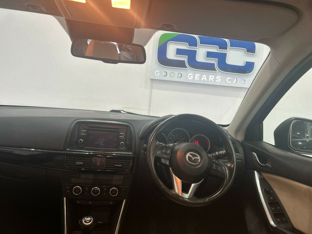 FCA approved!Next day Nationwide Delivery Across the UK, Faster than Amazon Prime!!,Free Delivery up to 25 miles!! Free Break Down cover!!,UP TO 3 YEARS UPGRADED WARRANTY AVAILABLE. Good Gear is delighted to present this exceptional Mazda CX-5 2.0 SKYACTIV-G Sport Nav Euro 5 (s/s) 5dr for sale. Featuring a comprehensive part-service history with 5 stamps, including the pre-delivery inspection, this vehicle has been meticulously maintained. The most recent service was completed at 43,900 miles. It comes with an MoT valid until Nov 2026 with no Advisories.This car has had only 1 prev owner and includes two keys. It starts, drives, and stops without any issues, reflecting its genuine and clean condition. The bodywork is in excellent shape, and the interior is free from stains and rips.We offer a 3-month full comprehensive warranty with the option to upgrade to a longer-term comprehensive warranty for an additional fee.Free breakdown Cover. We welcome credit card payments.All part exchanges welcome.Optional home deliveryThis car is at a local dealership. Commit to buying it and get it dropped off in your driveway for free. Contact Us for full details and conditions. Free for buyers within 25 miles of the dealership.We collaborate with finance companies, providing options for both full and partial financing for our vehicles.The car is completely HPI clear having no outstanding finance and has not been stolen or subject to an insurance loss either. Its mileage is also verified as completely genuine. The buyer will be supplied with its V5 registration document, service history, MOT certificate and a HPI clear certificate too. All vehicles supplied valeted prior to sale and with a nationwide warranty.Please call us today for a tailor made quotation. PLEASE NOTE - To avoid any disappointment PLEASE CALL PRIOR TO ARRIVAL to ensure the vehicle you are interested in has not been reserved by another customer and is on site available for viewing. v power socket - cargo area, 12v power socket - front, 19in alloy wheels - silver finish - design 147, abs - anti lock braking system, aux socket, air conditioning - dual zone climate control, airbags - curtain front and rear, airbags - driver, airbags - front passenger, airbags - front passenger deactivation system, armrest - rear, armrest - rear centre with cupholders x2, audible readout and display of sms and email via the 5.8-in touch screen, audio systems - am-fm radio-cd player, audio systems - am-fm radio-premium bose centrepoint surround sound system-speakers x9-6cd changer, audio voice command, auto dimming rear view mirror, box - between driver and passenger seats, bumpers - body coloured, central locking - remote with deadlocking, courtesy light with integral spotlights, cruise control, dsc - dynamic stability control, daytime running lights, deadlocking, door handles - body coloured, door mirrors - electrically adjustable-heated-folding-turning signal, door pockets - front, door pockets - rear, dusk sensing automatic headlights, electric windows - front and rear with one touch auto up and down on drivers side, electronic power assisted steering, engine start-stop button, exhaust tailpipes - double, front centre console with storage box, front fog lights, front side airbags, gear knob - leather and handbrake - leather, glovebox illumination, grab handles - front passenger and two rear with coat hooks, headlights - adaptive front lighting system, headlights - automatic levelling, headlights - bi-xenon, headlights - cleaning, headlights - reminder, heater ducts - rear, hill hold assist, isofix child seat anchorage for outer rear seats, immobiliser, integrated bluetooth system, karakuri tonneau cover, luggage compartment - light, multi information display, multimedia commander, multimedia system, overhead console with sunglassess holder, panel light control with dimmer, parking sensors - front, pollen filter, privacy glass - rear and rear side windows, rain-sensing front wipers, rear parking sensors, reversing camera, scr - secondary collision reduction, satellite navigation - powered by tomtom technology, seat - 40-20-40 karakuri fold flat rear, seatback pocket - driver and front passenger, seatbelt reminder for front and rear, seats - drivers electric 6-way adjustment, seats - drivers power lumbar adjustment, seats - drivers seat memory function, seats - front heated, seats - passengers electric height adjustment, seats - passengers power slide-recline and height adjustment, shark fin antenna, silver accents added to the audio panel buttons, smart city brake support, smart keyless entry, speakers x9, spoiler - rear roof body coloured, steering wheel - leather, steering wheel - mounted remote audio controls, steering wheel - tilt and height adjustment, sunvisors - drivers and passengers with covered vanity mirror-ticket holder-illumination, tcs - traction control system, thatcham category 1 alarm and immobiliser, touch screen - 5.8in colour, trip computer, tyre pressure monitoring system, tyre repair kit, usb connection, ipod connectivity