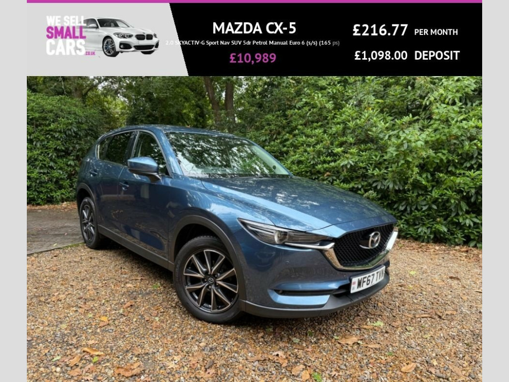This 2017 Mazda CX-5 2.0 SKYACTIV-G Sport Nav SUV 5dr Petrol Manual Eur is currently available for £10,989 in Southampton Hampshire with Petrol engine and Manual gearbox. For more information or to arrange a viewing, click here to send us an email using form below.