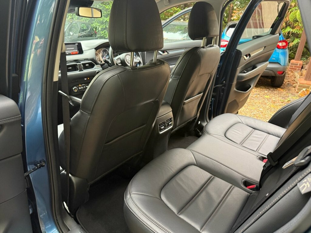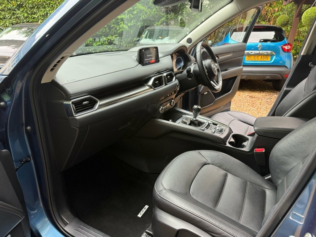 In stock now this stunning rare 2.0 Petrol CX-5 Sport NAV 5 Door with massive specification. I come complete with climate control, full black heated electric memory leather interior, heated steering wheel, factory bluetooth for handsfree, DAB digital radio, BOSE sound ststem, Aux and USB connectivity, colour sat nav, rear parking camera, power tailgate, power folding electric mirrors, electric windows all round, cruise control, multi function leather steering wheel, remote central locking with 2 x keys, 17 inch alloy wheels, Finished in stunning blue metallic with a great service history having recently been serviced and a long mot with no advisories. In great condition throughout. 19in Alloy Wheels - Gunmetal, 7in Colour Touch Screen Display, ABS - Anti Lock Braking System, Air Conditioning - Dual Zone Climate Con, AM-FM DAB Radio - Single CD Player with , Auto Dimming Rear View Mirror, AUX and USB Input, Bumpers - Body Coloured, Cruise Control with Manual Speed Adjustm, Deep Crystal Blue, Dome Interior Courtesy Light with Integr, Door Mirrors - Electrically Adjustable -, Door Pockets - Driver - Front Passenger , Dual Exhaust System, Dual Front Airbags, Dusk Sensing Automatic Headlights, Dynamic Stability Control with Traction , Electric Windows - Front and Rear with O, Electronic Parking Brake with Auto-Disen, Emergency Tyre Repair Kit, Engine Start-Stop Button, Fron