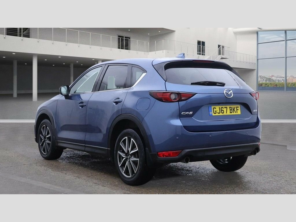 Finance Soft Search Pre Approval. This Mazda CX-5 2.0 SkyActiv-G Sport Nav Petrol Manual Euro 6 (165bhp) has covered 72000 miles in metallic blue with black interior NEW STOCK DUE IN SOON - GET IN TOUCH FOR MORE INFORMATION Deep Crystal Blue, Leather - Black, Eternal Blue, 19in Alloy Wheels - Gunmetal, 7in Colour Touch Screen Display, ABS - Anti Lock Braking System, AM-FM DAB Radio - Single CD Player with , AUX and USB Input, Air Conditioning - Dual Zone Climate Con, Auto Dimming Rear View Mirror, Bumpers - Body Coloured, Cruise Control with Manual Speed Adjustm, Dome Interior Courtesy Light with Integr, Door Mirrors - Electrically Adjustable -, Door Pockets - Driver - Front Passenger , Dual Exhaust System, Dual Front Airbags, Dusk Sensing Automatic Headlights, Dynamic Stability Control with Traction , Electric Windows - Front and Rear with O, Electronic Parking Brake with Auto-Disen, Emergency Tyre Repair Kit,