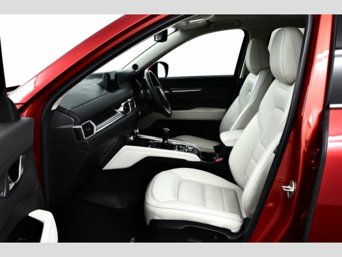 Soul Red crystal with Ivory Leather Interior, 1 Former Owner (2 total) from New covered only 44k miles & backed with Full Service History, Gorgeous CX-5 with Massive Spec and finished in the best colour combo! SPECIFICATION INCLUDES - Colour head up display, Power tilt/slide sunroof, Reversing camera, Blind spot monitoring with rear cross traffic alert, Front and rear parking sensors, Lane departure warning system, Lane keep assist, Power tailgate, Radar cruise control, Adaptive front lighting system, Electric adjustable/heated/folding door mirrors, High beam assist, LED Headlights, Privacy glass, Smart keyless entry, 10.25" display with Mazda Connect infotainment, 7" colour TFT display, Apple car play/Android Auto, Bluetooth connectivity with voice control, Integrated navigation system, Bluetooth audio streaming, Bose premium sound system with 10 speakers, DAB Digital radio, Multimedia Commander including separate volume dial, 8 way electric driver seat with lumbar support + memory, Dual zone climate control, Heated front seats, Heated steering wheel, Interior incandescent lighting, LED interior illumination, Upper dashboard and door trim in wood grain metal + MORE! Leather - Black, Soul Red