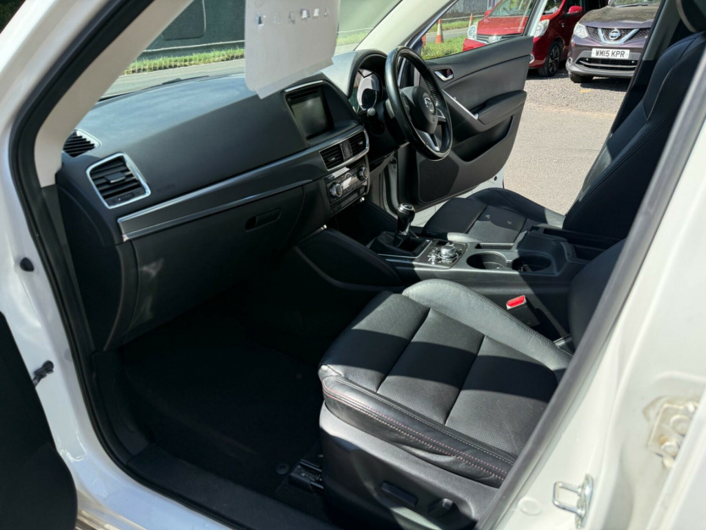 Boasting a full service history and a clear vehicle history check, this 2015 Mazda CX-5 SKYACTIV-D SE-L Lux Nav presents a well maintained example. This stylish SUV features a 2.2 litre diesel engine, meeting Euro 6 emissions standards. Inside, you'll find the SE-L Lux Nav trim offering comfort and convenience, including driver's seat memory function, front and rear parking sensors for easier manoeuvring, and an electric sunroof. Automatic dusk sensing headlights ensure visibility is always optimal.This Mazda CX-5 stands out with its impressive fuel economy, achieving up to 61 miles per gallon, which is significantly better than many other vehicles in its class. Its low CO2 emissions and low insurance group also contribute to lower running costs, making it a sensible choice. Furthermore, the generous boot space provides ample room for luggage or shopping, enhancing its practicality for everyday use. A 6 month warranty is included for your peace of mind.. 12V Power Socket - Cargo Area, 12V Power Socket - Front, 17in Alloy Wheels - Silver Finish - Design 146, ABS - Anti Lock Braking System, AUX Socket, Adjustable Speed Limiter, Air Conditioning - Dual Zone Climate Control, Airbags - Curtain Front, Airbags - Curtain Rear, Airbags - Driver, Airbags - Front Passenger, Airbags - Front Passenger Deactivation System, Armrest - Door Trims in Vinyl Leather, Armrest - Rear, Armrest - Rear Centre with Cupholders x2, Audio Systems - AM-FM Radio-CD Player, Auto Dimming Rear View Mirror, Box - Between Driver and Passenger Seats, Bumpers - Body Coloured, Courtesy Light with Integral Spotlights, Cruise Control, Cupholder - Front x2, DAB Radio, DSC - Dynamic Stability Control, Daytime Running Lights, Deadlocking, Door Handles - Body Coloured, Door Mirrors - Electrically Adjustable-Heated-Folding, Door Pockets - Front, Door Pockets - Rear, Dusk Sensing Automatic Headlights, EBA - Emergency Brake Assist, EBD - Electronic Brakeforce Distribution, Electric Sunroof, Electric Windows - Front and Rear, Electronic Parking Brake, Electronic Power Assisted Steering, Emergency Stop Signalling System - ESS, Engine Start-Stop Button, Exhaust Tailpipes - Double, Exterior Temperature Gauge, Front Centre Console with Storage Box, Front Fog Lights, Front Side Airbags, Gear Knob - Leather, Gear Shift Indicator, Glovebox Illumination, Grab Handles - Front Passenger and Two Rear with Coat Hooks, Headlights - Coming-Leaving Home, Headlights - Halogen, Headlights - Manual Levelling, Headlights - Reminder, Heater Ducts - Rear, Hill Hold Assist, ISOFIX Child Seat Anchorage for Outer Rear Seats, Immobiliser, Integrated Bluetooth System, Karakuri Tonneau Cover, Luggage Compartment - Light, Multi Information Display, Multimedia Commander, Multimedia System, Overhead Console with Sunglassess Holder, Panel Light Control with Dimmer, Parking Sensors - Front, Pollen Filter, Privacy Glass - Rear and Rear Side Windows, Rain-Sensing Front Wipers, Rear Air Vents, Rear Parking Sensors, Remote Central Locking, SCR - Secondary Collision Reduction, Satellite Navigation - Powered by TomTom Technology, Seat - 40-20-40 Karakuri Fold Flat Rear, Seatback Pocket - Driver and Front Passenger, Seatbelt Reminder for Front and Rear, Seats - Driver Electric 8-way Power Adjustment, Seats - Drivers Power Lumbar Adjustment, Seats - Drivers Seat Memory Function, Seats - Front Heated, Seats - Front Passenger Electric 6-Way Power Adjustment, Shark Fin Antenna, Silver Accents Added To The Audio Panel Buttons, Smart City Brake Support, Speakers x6, Spoiler - Rear Roof Body Coloured, Steering Wheel - Leather, Steering Wheel - Mounted Remote Audio Controls, Steering Wheel - Tilt and Height Adjustment, Sunvisors - Driver Ticket Holder, Sunvisors - Driver and Passenger with Covered Mirror-Illumination, TCS - Traction Control System, Thatcham Catergory 1 Alarm, Touch Screen - 7in Colour TFT, Trip Computer, Tyre Pressure Monitoring System, Tyre Repair Kit, USB Connection x2, Voice Control For Navigation, Leather - Black. Full service history