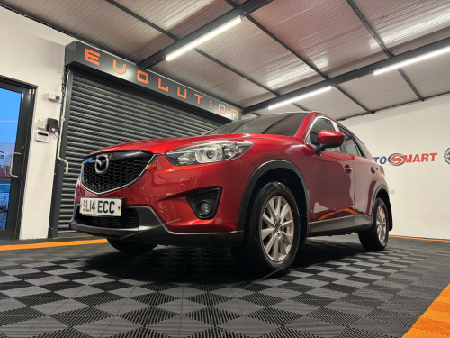 Mazda CX-5 2.2 SE-L Diesel Nav Edition 5dr Hatchback.. Registered - 28/07/2014 (14-reg).. 122,000 miles.. Service history (digital print-out).. Just serviced.. MOT - 23rd December 2026.. 1 year MOT.. 3 former keepers from new.. Over £3000 spent on - Recent front and rear brake discs and pads, New lower suspension arms, Track rod ends plus tracking, Rear brake calipers, New DPF filter.. No expense has been spared.. Top spec example.. Front and rear parking sensors.. Nav media pack.. Cruise control.. Start and stop function.. Phone connection.. Bluetooth.. USB input.. AUX input.. HPI clear with print-out.. Full detailed valet has been carried out.. Rear tow bar.. Very clean example.. Great value for money..