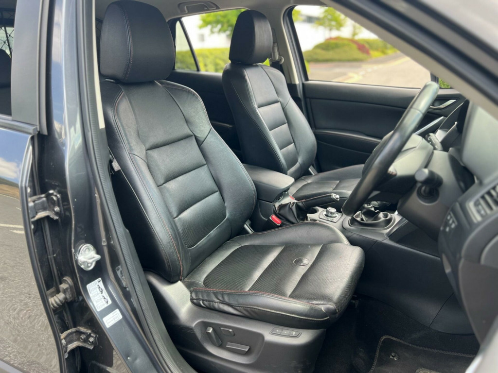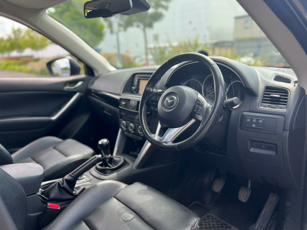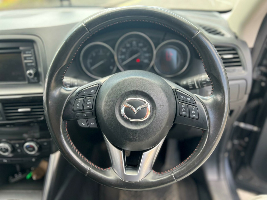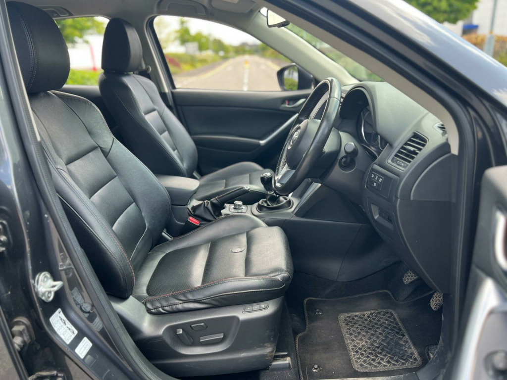 2015 Mazda CX-5 Sport Skyactiv 2.1 diesel finished in grey. Only 51,000 warranted miles on the clock. Comes with a 12 month warranty! MOT til 11th February 2026. 2 former keepers from new. Service history available; 4 services. Car drives well with no mechanical faults. Full V5 available. Comes with a top spec including; alloy wheels, leather steering wheel, multi-functional steering wheel, cruise control, on-board computer, Satellite Navigation, Radio/CD, electric windows, central locking, AC/Climate control, heated leather seats, automatic headlights, TPMS, cup holders and many more. Nationwide delivery. P/X welcome. HPI clear. ULEZ compliant. 2 keys. Any questions do not hesitate to contact us on 07443456706 v power socket - cargo area, 12v power socket - front, 19in alloy wheels - gunmetal, abs - anti lock braking system, aux socket, adjustable speed limiter, air conditioning - dual zone climate control, airbags - curtain front, airbags - curtain rear, airbags - driver, airbags - front passenger, airbags - front passenger deactivation system, armrest - centre, armrest - rear, armrest - rear centre with cupholders x2, audio systems - am-fm radio-cd player, auto dimming rear view mirror, box - between driver and passenger seats, bumpers - body coloured, chrome accents on dash-door and steering wheel switch panels, courtesy light with integral spotlights, cruise control, cupholder - front x2, dab radio, dsc - dynamic stability control, deadlocking, door handles - body coloured, door mirrors - electrically adjustable-heated-folding, door mirrors - led turn signals, door pockets - front, door pockets - rear, dusk sensing automatic headlights, eba - emergency brake assist, ebd - electronic brakeforce distribution, electric windows - front and rear, electronic parking brake, electronic power assisted steering, emergency stop signalling system - ess, engine start-stop button, exhaust tailpipes - double, exterior temperature gauge, front centre console with storage box, front fog lights - led, front side airbags, gear knob - leather, gear shift indicator, glovebox illumination, grab handles - front passenger and two rear with coat hooks, headlights - adaptive front lighting system, headlights - automatic levelling, headlights - coming-leaving home, headlights - led, headlights - reminder, heater ducts - rear, hill hold assist, isofix child seat anchorage for outer rear seats, immobiliser, integrated bluetooth system, karakuri tonneau cover, led daytime running lights, luggage compartment - light, multi information display, multimedia commander, multimedia system, overhead console with sunglassess holder, panel light control with dimmer, parking sensors - front, pollen filter, premium bose centrepoint surround sound system, privacy glass - rear and rear side windows, rain-sensing front wipers, rear air vents, rear lights - led, rear parking sensors, reversing camera, scr - secondary collision reduction, satellite navigation - european mapping with 3-years map updates, satellite navigation - powered by tomtom technology, seat - 40-20-40 karakuri fold flat rear, seatback pocket - driver and front passenger, seatbelt reminder for front and rear, seats - driver electric 8-way power adjustment, seats - drivers power lumbar adjustment, seats - drivers seat memory function, seats - front heated, seats - front passenger electric 6-way power adjustment, shark fin antenna, silver accents added to the audio panel buttons, smart city brake support, smart keyless entry, speakers x9, spoiler - rear roof body coloured, steering wheel - leather, steering wheel - mounted remote audio controls, steering wheel - tilt and height adjustment, sunvisors - driver ticket holder, sunvisors - driver and passenger with covered mirror-illumination, tcs - traction control system, thatcham catergory 1 alarm, touch screen - 7in colour tft, trip computer, tyre pressure monitoring system, tyre repair kit, usb connection x2, voice control for navigation