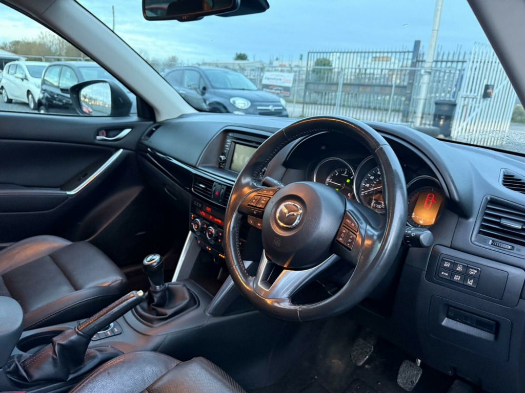 Mazda CX-5 2.2 TDi Twin Turbo 173 Sport 4X4Registered March 2014Fresh Out Of England.Warranted 155k UK Motorway Miles With A 10 Stamp Service History.MOT July 2026.Full Pre Delivery Inspection In Our Workshop.3 Months Comprehensive No Quibble In House Warranty Included.Finished In Unmarked Metallic Blue With Full Black Leather Trim.Top Spec Model : Electric Heated Front Seats With Memory Function For Driver's Seat, Electric Heated Folding Door Mirrors,Cruise Control,Colour Screen Sat/Nav & Reverse Camera,Xenon Headlamps With Wash Jets, Bluetooth Connectivity, Driver's Armrest,Multi Function Leather Steering Wheel,Keyless Push Button Start, Bose Sound System,Alloy Wheels,Remote Central Locking With Factory Alarm & Immobiliser.Part Exchange Welcome.Viewing By Appointment Only 7 Days.Signature Cars Of Portadown Best Value Approved Used Cars In Northern Ireland.*****Check Out Our 5Star Reviews On Line***** v power socket - cargo area, 12v power socket - front, 19in alloy wheels - silver finish - design 147, abs - anti lock braking system, aux socket, air conditioning - dual zone climate control, airbags - curtain front and rear, airbags - driver, airbags - front passenger, airbags - front passenger deactivation system, armrest - rear, armrest - rear centre with cupholders x2, audible readout and display of sms and email via the 5.8-in touch screen, audio systems - am-fm radio-cd player, audio systems - am-fm radio-premium bose centrepoint surround sound system-speakers x9-6cd changer, audio voice command, auto dimming rear view mirror, box - between driver and passenger seats, bumpers - body coloured, central locking - remote with deadlocking, courtesy light with integral spotlights, cruise control, dsc - dynamic stability control, daytime running lights, deadlocking, door handles - body coloured, door mirrors - electrically adjustable-heated-folding-turning signal, door pockets - front, door pockets - rear, dusk sensing automatic headlights, electric windows - front and rear with one touch auto up and down on drivers side, electronic power assisted steering, engine start-stop button, exhaust tailpipes - double, front centre console with storage box, front fog lights, front side airbags, gear knob - leather and handbrake - leather, glovebox illumination, grab handles - front passenger and two rear with coat hooks, headlights - adaptive front lighting system, headlights - automatic levelling, headlights - bi-xenon, headlights - cleaning, headlights - reminder, heater ducts - rear, hill hold assist, isofix child seat anchorage for outer rear seats, immobiliser, integrated bluetooth system, karakuri tonneau cover, luggage compartment - light, multi information display, multimedia commander, multimedia system, overhead console with sunglassess holder, panel light control with dimmer, parking sensors - front, pollen filter, privacy glass - rear and rear side windows, rain-sensing front wipers, rear parking sensors, reversing camera, scr - secondary collision reduction, satellite navigation - powered by tomtom technology, seat - 40-20-40 karakuri fold flat rear, seatback pocket - driver and front passenger, seatbelt reminder for front and rear, seats - drivers electric 6-way adjustment, seats - drivers power lumbar adjustment, seats - drivers seat memory function, seats - front heated, seats - passengers electric height adjustment, seats - passengers power slide-recline and height adjustment, shark fin antenna, silver accents added to the audio panel buttons, smart city brake support, smart keyless entry, speakers x9, spoiler - rear roof body coloured, steering wheel - leather, steering wheel - mounted remote audio controls, steering wheel - tilt and height adjustment, sunvisors - drivers and passengers with covered vanity mirror-ticket holder-illumination, tcs - traction control system, thatcham category 1 alarm and immobiliser, touch screen - 5.8in colour, trip computer, tyre pressure monitoring system, tyre repair kit, usb connection, ipod connectivity
