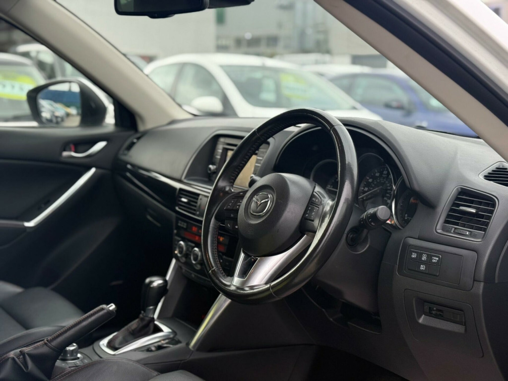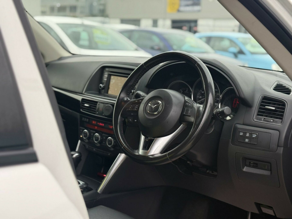 This 2014 Mazda CX-5 SKYACTIV-D Sport Nav is a great find with its MOT valid until June 2026, offering peace of mind for the coming years. This Four Wheel Drive model boasts a 2.2L Diesel engine and meets the Euro 6 emission class. With a mileage of just 81,000 miles, it's considered low for its age. The vehicle comes with partial service history and features Smart Keyless Entry, Bi-Xenon headlights, front heated seats, a reversing camera, and a driver's seat with memory function.The CX-5 SKYACTIV-D Sport Nav is also noted for its low insurance group, making it an economical choice. You'll appreciate the generous boot space, perfect for luggage or shopping. These aspects, combined with its efficient engine and advanced features, indicate that this Mazda CX-5 offers a superior driving experience compared to many other vehicles in its class. v power socket - cargo area, 12v power socket - front, 19in alloy wheels - silver finish - design 147, abs - anti lock braking system, aux socket, air conditioning - dual zone climate control, airbags - curtain front and rear, airbags - driver, airbags - front passenger, airbags - front passenger deactivation system, armrest - rear, armrest - rear centre with cupholders x2, audible readout and display of sms and email via the 5.8-in touch screen, audio systems - am-fm radio-cd player, audio systems - am-fm radio-premium bose centrepoint surround sound system-speakers x9-6cd changer, audio voice command, auto dimming rear view mirror, box - between driver and passenger seats, bumpers - body coloured, central locking - remote with deadlocking, courtesy light with integral spotlights, cruise control, dsc - dynamic stability control, daytime running lights, deadlocking, door handles - body coloured, door mirrors - electrically adjustable-heated-folding-turning signal, door pockets - front, door pockets - rear, dusk sensing automatic headlights, electric windows - front and rear with one touch auto up and down on drivers side, electronic power assisted steering, engine start-stop button, exhaust tailpipes - double, front centre console with storage box, front fog lights, front side airbags, gear knob - leather and handbrake - leather, glovebox illumination, grab handles - front passenger and two rear with coat hooks, headlights - adaptive front lighting system, headlights - automatic levelling, headlights - bi-xenon, headlights - cleaning, headlights - reminder, heater ducts - rear, hill hold assist, isofix child seat anchorage for outer rear seats, immobiliser, integrated bluetooth system, karakuri tonneau cover, kick down switch, luggage compartment - light, multi information display, multimedia commander, multimedia system, overhead console with sunglassess holder, panel light control with dimmer, parking sensors - front, pollen filter, privacy glass - rear and rear side windows, rain-sensing front wipers, rear parking sensors, reversing camera, scr - secondary collision reduction, satellite navigation - powered by tomtom technology, seat - 40-20-40 karakuri fold flat rear, seatback pocket - driver and front passenger, seatbelt reminder for front and rear, seats - drivers electric 6-way adjustment, seats - drivers power lumbar adjustment, seats - drivers seat memory function, seats - front heated, seats - passengers electric height adjustment, seats - passengers power slide-recline and height adjustment, shark fin antenna, silver accents added to the audio panel buttons, smart city brake support, smart keyless entry, speakers x9, spoiler - rear roof body coloured, steering wheel - leather, steering wheel - mounted remote audio controls, steering wheel - tilt and height adjustment, sunvisors - drivers and passengers with covered vanity mirror-ticket holder-illumination, tcs - traction control system, thatcham category 1 alarm and immobiliser, touch screen - 5.8in colour, trip computer, tyre pressure monitoring system, tyre repair kit, usb connection, ipod connectivity