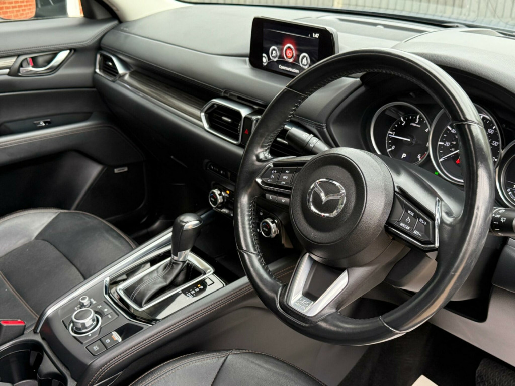 HPI Clear, free 6 months warranty, Full Service History with a brand new full service & 12 months new MOT included. Free 30 miles delivery. 2 keys. ULEZ compliant. Just 2 owners from new. Annual road tax just £195. This amazing car is ready to drive away same day!!!We have for you here an excellent, a very high in demand and popular Mazda CX-5 in immaculate condition both inside and out. This exceptionally reliable and well maintained car, drives and feels great. Packed with features and extras. This car is economical to run, insure and maintain, and it is a fantastic car at unbeatable price! Only 2 owners from new! Has 2 keys, full service history with a brand new full service, new MOT and the car includes 6 months warranty with options to extend. Full HPI checked and PASSED. HPI certificate provided at NO EXTRA COST. A car that ticks all the boxes! Buy with confidence! Finance options available, contact us for more information.Contact number: 01344926227 Or 07459108076 nroof, removable tow bar, front & rear parking sensors, rear view parking camera, satellite navigation system, head up display, heated front seats, heated steering wheel, bose sound system, safety pack, leather - stone, 19in alloy wheels - gunmetal, 7in colour touch screen display, abs - anti lock braking system, am-fm dab radio - single cd player with premium bose centrepoint surround-sound system with nine speakers, aux and usb input, air conditioning - dual zone climate control, auto dimming rear view mirror, bumpers - body coloured, cruise control with manual speed adjustment, dome interior courtesy light with integrated spotlight, door mirrors - electrically adjustable - heated - power folding with integrated indicator lights, door pockets - driver - front passenger and rear, dual exhaust system, dual front airbags, dusk sensing automatic headlights, dynamic stability control with traction control system, electric windows - front and rear with one-touch auto down - up and timer function, electronic parking brake with auto-disengage function, emergency tyre repair kit, engine start-stop button, front centre console with storage box, front fog lights - led, front passenger airbag cut-off switch, front side airbags, front wiper de-icer, front and rear curtain airbags, front and rear parking distance sensors, gear shift - leather-wrapped, glovebox illumination, grab handles - front passenger and two rear with coat hooks, head restraints - rear, headlights - adaptive front lighting system, headlights - coming-leaving home, headlights - led with auto headlight levelling, heated front seats with 3-stage settings, hill hold assist, isofix child seat anchorage for outer rear seats, integrated bluetooth, karakuri tonneau cover, led daytime running lights, luggage compartment - light, luggage compartment - power outlet, mazda navigation system - european mapping with alternative route calculations - point of interest search and 3-years free map updates, meter set display - window projection colour active driving display with traffic sign recognition - colour head-up display - shows vehicle speed - warnings and turn-by-turn navigation, multimedia commander, power assisted steering - electronic, power liftgate, privacy glass - rear and rear side windows, rain-sensing front wipers, rear air vents, rear seats - centre armrest with two cupholders, rear seats - manual recline adjustment, remote central locking with deadlocking, reversing camera, scr - secondary collision reduction, seat - 40-20-40 karakuri fold flat rear, seatback pocket - driver and front passenger, seatbelt reminder for front and rear, seatbelts - front - 3 point - elr x 2 with pre-tensioners, seatbelts - rear - 3-point - elr, seats - drivers power lumbar adjustment, seats - drivers power slide-recline and height adjustment with memory function linked to smart key, seats - passengers power slide-recline and height adjustment, shark fin antenna, smart city brake support, smart remote keyless entry system, spoiler - rear roof body coloured, steering wheel - heated, steering wheel - leather wrapped, steering wheel - mounted audio and bluetooth controls, steering wheel - tilt and height adjustment, storage spaces - inside front centre armrest, sunroof - power tilt and slide, sunvisors - drivers and passengers with covered vanity mirror-ticket holder-illumination, thatcham category 1 alarm and immobiliser, trip computer, two cup holders between driver and passenger seat, usb - ipod connectivity, wipers - rear adjustable speed with intermittent, i-stop status