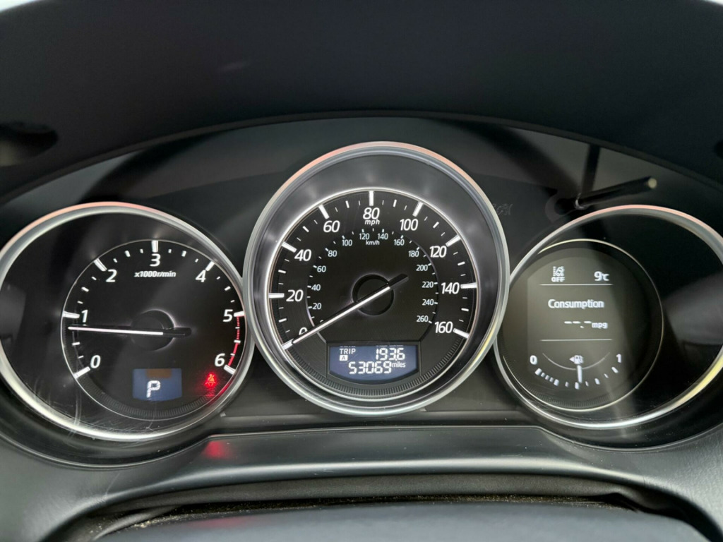 We are delighted to offer this remarkably low mileage of just 53,500 miles for its 2016 registration.Private plate is not included and will be the plate as in photograph Six months warranty with Warranty First top cover.Very economical to run drives really wellRecent MOT and service by MazdaThe car is available to view and test drive seven days a week including evenings and weekends by appointment .Part exchange welcomeFantastic finance options with Meridian FinanceTwo keys and book pack Keyless entry and start huge spec Family run business please read our reviews.This Mazda CX-5 SKYACTIV-D Sport Nav presents an exceptional ownership proposition. This Four Wheel Drive model, powered by an efficient 2.2L Diesel engine meeting Euro 6 emissions standards, boasts a full dealership service history, with its last service completed on 2025-10-13 at 53,000 miles. It comes with a clear vehicle history check and has had only two owners. For your peace of mind, a 12 month MOT will be provided on purchase, and the vehicle is covered by a 6 month warranty.This Sport Nav trim is equipped with a host of desirable features, including front parking sensors with parking assistance, a dual zone climate control system for personalised comfort, and an integrated Bluetooth system for seamless connectivity. Enjoy your journeys with the premium BOSE Centrepoint Surround Sound System, and for added convenience, the driver's seat features a memory function. The CX-5 also offers a generous boot space, making it practical for all your needs. Its fuel economy is a notable highlight, achieving an impressive 51 miles per gallon, and it sits in a low insurance group, indicating it is more economical to run than many similar vehicles. v power socket - cargo area, 12v power socket - front, 19in alloy wheels - gunmetal, abs - anti lock braking system, aux socket, adjustable speed limiter, air conditioning - dual zone climate control, airbags - curtain front, airbags - curtain rear, airbags - driver, airbags - front passenger, airbags - front passenger deactivation system, armrest - centre, armrest - rear, armrest - rear centre with cupholders x2, audio systems - am-fm radio-cd player, auto dimming rear view mirror, box - between driver and passenger seats, bumpers - body coloured, chrome accents on dash-door and steering wheel switch panels, courtesy light with integral spotlights, cruise control, cupholder - front x2, dab radio, dsc - dynamic stability control, deadlocking, door handles - body coloured, door mirrors - electrically adjustable-heated-folding, door mirrors - led turn signals, door pockets - front, door pockets - rear, dusk sensing automatic headlights, eba - emergency brake assist, ebd - electronic brakeforce distribution, electric windows - front and rear, electronic parking brake, electronic power assisted steering, emergency stop signalling system - ess, engine start-stop button, exhaust tailpipes - double, exterior temperature gauge, front centre console with storage box, front fog lights - led, front side airbags, gear knob - leather, glovebox illumination, grab handles - front passenger and two rear with coat hooks, headlights - adaptive front lighting system, headlights - automatic levelling, headlights - coming-leaving home, headlights - led, headlights - reminder, heater ducts - rear, hill hold assist, isofix child seat anchorage for outer rear seats, immobiliser, integrated bluetooth system, karakuri tonneau cover, led daytime running lights, luggage compartment - light, multi information display, multimedia commander, multimedia system, overhead console with sunglassess holder, panel light control with dimmer, parking sensors - front, pollen filter, premium bose centrepoint surround sound system, privacy glass - rear and rear side windows, rain-sensing front wipers, rear air vents, rear lights - led, rear parking sensors, reversing camera, scr - secondary collision reduction, satellite navigation - european mapping with 3-years map updates, satellite navigation - powered by tomtom technology, seat - 40-20-40 karakuri fold flat rear, seatback pocket - driver and front passenger, seatbelt reminder for front and rear, seats - driver electric 8-way power adjustment, seats - drivers power lumbar adjustment, seats - drivers seat memory function, seats - front heated, seats - front passenger electric 6-way power adjustment, shark fin antenna, silver accents added to the audio panel buttons, smart city brake support, smart keyless entry, speakers x9, spoiler - rear roof body coloured, steering wheel - leather, steering wheel - mounted remote audio controls, steering wheel - tilt and height adjustment, sunvisors - driver ticket holder, sunvisors - driver and passenger with covered mirror-illumination, tcs - traction control system, thatcham catergory 1 alarm, touch screen - 7in colour tft, trip computer, tyre pressure monitoring system, tyre repair kit, usb connection x2, voice control for navigation, leather - stone