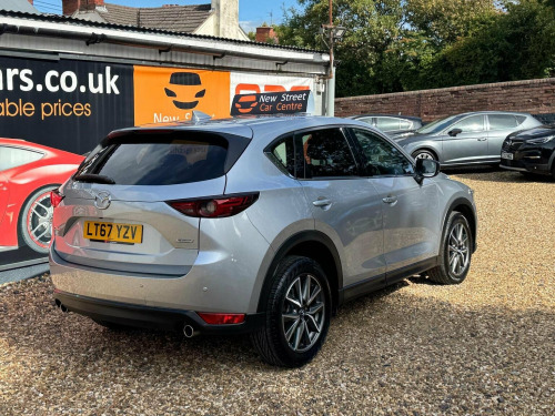 This 2018 Mazda CX-5 SKYACTIV-D Sport Nav offers exceptional value with its remarkably low mileage of just 72,000 miles for its age.  As a Euro 6 compliant 2.2L diesel, this Sport Nav model combines efficient performance with a sophisticated driving experience.  You can drive away with confidence, as it comes with a full 12 months MOT provided on purchase.  Inside, youll find a host of desirable features, including dusk sensing automatic headlights, a premium Bose sound system with nine speakers, and smart remote keyless entry for effortless access.  The convenience continues with a heated steering wheel, perfect for cooler mornings, and a reversing camera to aid with parking. This Mazda CX-5 stands out with its impressive fuel economy of 57 mpg, indicating it is more economical than many similar vehicles. Its low CO2 emissions further highlight its efficiency and environmental consideration. The generous boot space provides ample room for luggage or shopping, making it a practical choice for families or those who need versatility. Furthermore, its placement in a low insurance group suggests that running costs will be kept to a minimum, making this CX-5 an attractive and sensible option. We are proud to present this Mazda CX-5 2.2 SKYACTIV-D Sport Nav Euro 6 (s/s) 5dr that comes with a  service history for added peace of mind. It comes with 2 keys and 2 owner and has just been serviced. 12 months  MOT included, You have the option to purchase  RAC warranty with the option to extend.At New Street Car Centre we have over 25 years experience as the largest and most trusted used car dealership in Telford. We offer award winning customer service, great prices and excellent preparation standards. Each vehicle undergoes quality control inspections and a complimentary history check for your added peace of mind.we have also included additional specification but please always check the exact specification details with ourselves prior to purchase as models can vary
