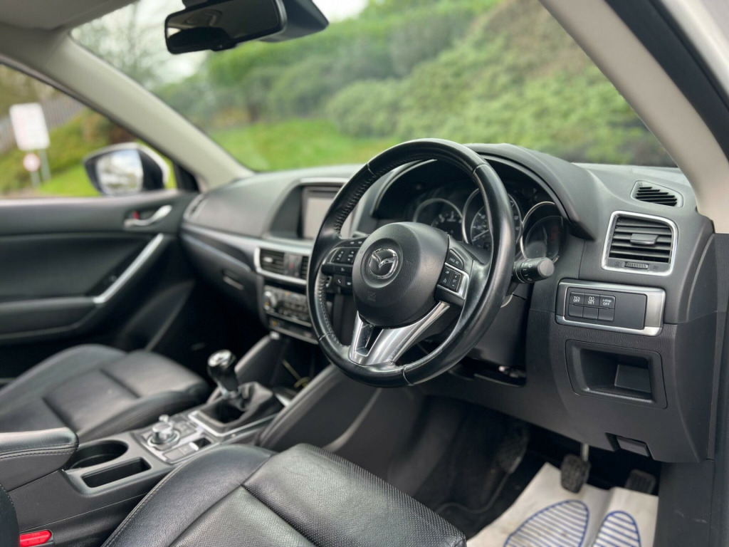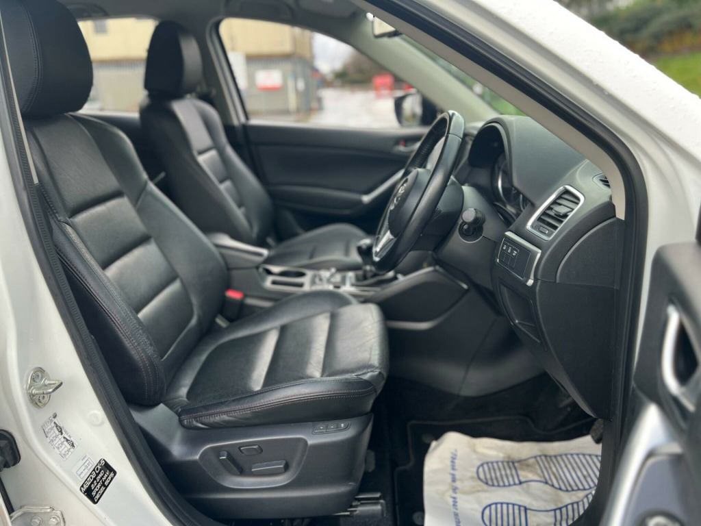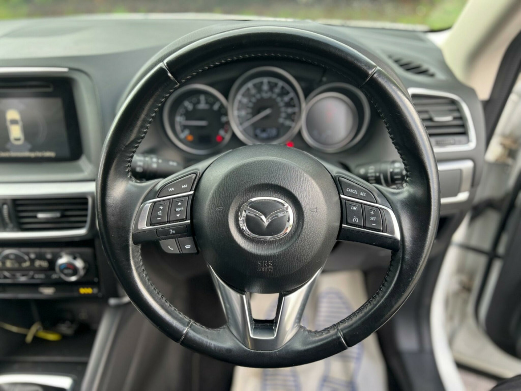 Mazda CX-5 2.2 SKYACTIV-D Sport Nav Euro 6 (s/s) Manual Diesel 5dr in white. Only 69679 warranted miles on the clock. Car comes with a 12 Month Warranty!! Will come with a full MOT. Only 1 previous owner from new. £35 Road Tax for the year. 2 Keys. Service History Available: 5 services 1 main dealer. Last serviced ant 65591. Car drives well with no mechanical faults. Full V5 Available. Good spec including: Parking Sensors, Climate Control, Leather Trim, 19'', Alloy Wheels, Tyre Repair Kit, Privacy Glass, Leather Steering Wheel, CD/Radio, Electric Windows, Central Locking and many more. Nationwide Delivery Available. P/X Welcome. HPI Clear. ULEZ Compliant. Any questions don't hesitate to contact us on 07443456706. Whatsapp available as well, 12 months warranty. v power socket - cargo area, 12v power socket - front, 19in alloy wheels - gunmetal, abs - anti lock braking system, aux socket, adjustable speed limiter, air conditioning - dual zone climate control, airbags - curtain front, airbags - curtain rear, airbags - driver, airbags - front passenger, airbags - front passenger deactivation system, armrest - centre, armrest - rear, armrest - rear centre with cupholders x2, audio systems - am-fm radio-cd player, auto dimming rear view mirror, box - between driver and passenger seats, bumpers - body coloured, chrome accents on dash-door and steering wheel switch panels, courtesy light with integral spotlights, cruise control, cupholder - front x2, dab radio, dsc - dynamic stability control, deadlocking, door handles - body coloured, door mirrors - electrically adjustable-heated-folding, door mirrors - led turn signals, door pockets - front, door pockets - rear, dusk sensing automatic headlights, eba - emergency brake assist, ebd - electronic brakeforce distribution, electric windows - front and rear, electronic parking brake, electronic power assisted steering, emergency stop signalling system - ess, engine start-stop button, exhaust tailpipes - double, exterior temperature gauge, front centre console with storage box, front fog lights - led, front side airbags, gear knob - leather, gear shift indicator, glovebox illumination, grab handles - front passenger and two rear with coat hooks, headlights - adaptive front lighting system, headlights - automatic levelling, headlights - coming-leaving home, headlights - led, headlights - reminder, heater ducts - rear, hill hold assist, isofix child seat anchorage for outer rear seats, immobiliser, integrated bluetooth system, karakuri tonneau cover, led daytime running lights, luggage compartment - light, multi information display, multimedia commander, multimedia system, overhead console with sunglassess holder, panel light control with dimmer, parking sensors - front, pollen filter, premium bose centrepoint surround sound system, privacy glass - rear and rear side windows, rain-sensing front wipers, rear air vents, rear lights - led, rear parking sensors, reversing camera, scr - secondary collision reduction, satellite navigation - european mapping with 3-years map updates, satellite navigation - powered by tomtom technology, seat - 40-20-40 karakuri fold flat rear, seatback pocket - driver and front passenger, seatbelt reminder for front and rear, seats - driver electric 8-way power adjustment, seats - drivers power lumbar adjustment, seats - drivers seat memory function, seats - front heated, seats - front passenger electric 6-way power adjustment, shark fin antenna, silver accents added to the audio panel buttons, smart city brake support, smart keyless entry, speakers x9, spoiler - rear roof body coloured, steering wheel - leather, steering wheel - mounted remote audio controls, steering wheel - tilt and height adjustment, sunvisors - driver ticket holder, sunvisors - driver and passenger with covered mirror-illumination, tcs - traction control system, thatcham catergory 1 alarm, touch screen - 7in colour tft, trip computer, tyre pressure monitoring system, tyre repair kit, usb connection x2, voice control for navigation