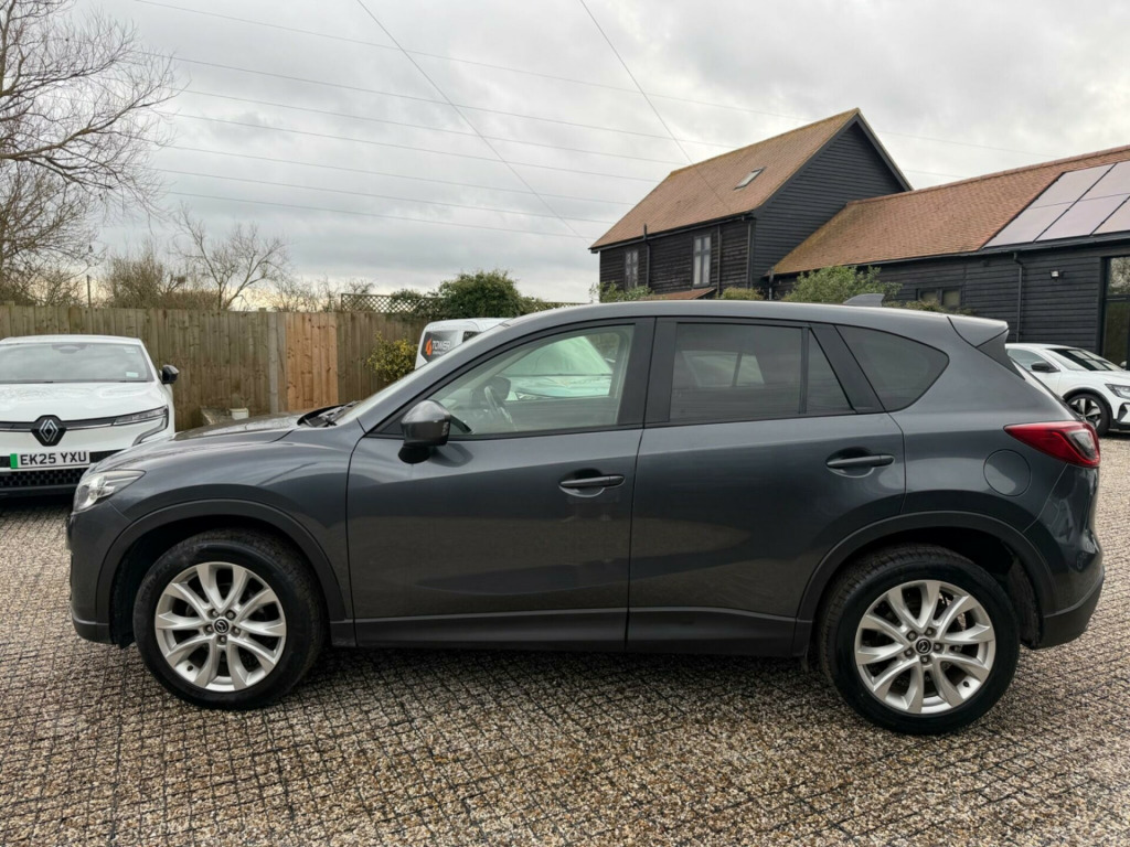TCH Automotive Presents This Mazda CX-5 2.2 SKYACTIV-D Sport Nav, Recent Service And Timing Chain, Part Service History, Fresh 1 Years MOT, Overall Clean Inside And Out, Good Specification, 2 Keys. This 2013 Mazda CX-5 SKYACTIV-D Sport Nav is a superb example of a well maintained family SUV. It boasts a powerful yet efficient 2.2 litre diesel engine, meeting the Euro 6 emission standards. The Sport Nav trim level ensures a premium experience, featuring front parking sensors with parking assistance, dusk sensing automatic headlights, and striking Bi-Xenon headlights. Inside, you'll find the comfort of front heated seats and an impressive nine speaker BOSE Centrepoint Surround Sound System complete with a 6CD changer, all controlled via the AM-FM radio.This CX-5 offers excellent value, with a remarkable fuel economy of 61 mpg, demonstrating its efficiency on longer journeys. Its low CO2 emissions and low insurance group rating further contribute to its affordability. You'll also appreciate the generous boot space, making it ideal for carrying luggage or shopping. These highlights collectively indicate that this Mazda CX-5 provides a superior ownership experience compared to many other vehicles in its class. ather - black, 12v power socket - cargo area, 19in alloy wheels, air conditioning - dual zone climate control, airbags - curtain front and rear, airbags - driver, airbags - front passenger, airbags - front passenger deactivation system, anti lock braking system, armrest - rear, audio systems - am-fm radio-cd player, audio systems - am-fm radio-premium bose centrepoint surround sound system-speakers x9-6cd changer, auto dimming rear view mirror, cruise control, dsc - dynamic stability control, daytime running lights, door mirrors - electrically adjustable-heated-folding-turning signal, dusk sensing automatic headlights, electric windows - one touch auto up and down, electric windows - rear, engine start-stop button, exhaust tailpipes - double, front fog lights, front side airbags, gear knob - leather and handbrake - leather, glovebox illumination, headlights - adaptive front lighting system, headlights - automatic levelling, headlights - bi-xenon, headlights - cleaning, hill hold assist, isofix child seat anchorage for outer rear seats, integrated bluetooth system, karakuri tonneau cover, keyless entry - advanced, multi information display, multimedia commander, overhead console with sunglassess holder, parking sensors - front, power assisted steering, power door locks with deadlocking, privacy glass, rain-sensing front wipers, rear parking sensors, satellite navigation - powered by tomtom technology, seat - 40-20-40 karakuri fold flat rear, seatbelt reminder for front and rear, seats - drivers electric 6-way adjustment, seats - drivers power lumbar adjustment, seats - front heated, shark fin antenna, smart city brake support, spoiler - rear roof, steering wheel - leather, steering wheel - mounted remote audio controls, tcs - traction control system, thatcham category 1 alarm and immobiliser, touch screen - 5.8in colour, tyre pressure monitoring system, tyre repair kit, usb and aux connection, ipod connectivity