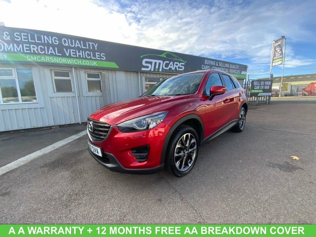 just arrived what a lovely MAZDA CX-5 2.2 SKYACTIV-D Sport Nav SUV 5dr Diesel Auto 4WD Euro 6 (s/s) (175 ps), FULL DEALER SERVICE HISTORY, drives superb, excellent condition in & out, well looked after, 2 keys, rear & front parking sensors, reverse camera, bluetooth, cruise control, automatic, 1 former keeper, leather seats, front heated seats, sat nav, HPI CLEAR. FINANCE AVAILABLE - LOW CREDIT SCORE? WE MAY STILL BE ABLE TO HELP. EXCELLENT EXTENDED AA WARRANTY OPTION AND 12 MONTH AA BREAKDOWN COVER INCLUDED. ALL CARS READY TO DRIVE AWAY. 5 DAY DRIVE AWAY INSURANCE AVAILABLE. RESERVE THIS CAR EXCLUSIVELY FOR YOU, SAFELY AND SECURELY AT SMCARSNORWICH.CO.UK WITH A FULLY REFUNDABLE £99 DEPOSIT. ACT FAST - THIS WON'T HANG AROUND LONG! 12V Power Socket - Cargo Area, 12V Power Socket - Front, 19in Alloy Wheels - Gunmetal, ABS - Anti Lock Braking System, AUX Socket, Adjustable Speed Limiter, Air Conditioning - Dual Zone Climate Con, Airbags - Curtain Front, Airbags - Curtain Rear, Airbags - Driver, Airbags - Front Passenger, Airbags - Front Passenger Deactivation S, Armrest - Centre, Armrest - Rear, Armrest - Rear Centre with Cupholders x2, Audio Systems - AM-FM Radio-CD Player, Auto Dimming Rear View Mirror, Box - Between Driver and Passenger Seats, Bumpers - Body Coloured, Chrome Accents on Dash-Door and Steering, Courtesy Light with Integral Spotlights, Cruise Control, Cupholder - Front x2, DAB Radio, DSC - Dynamic Stabil