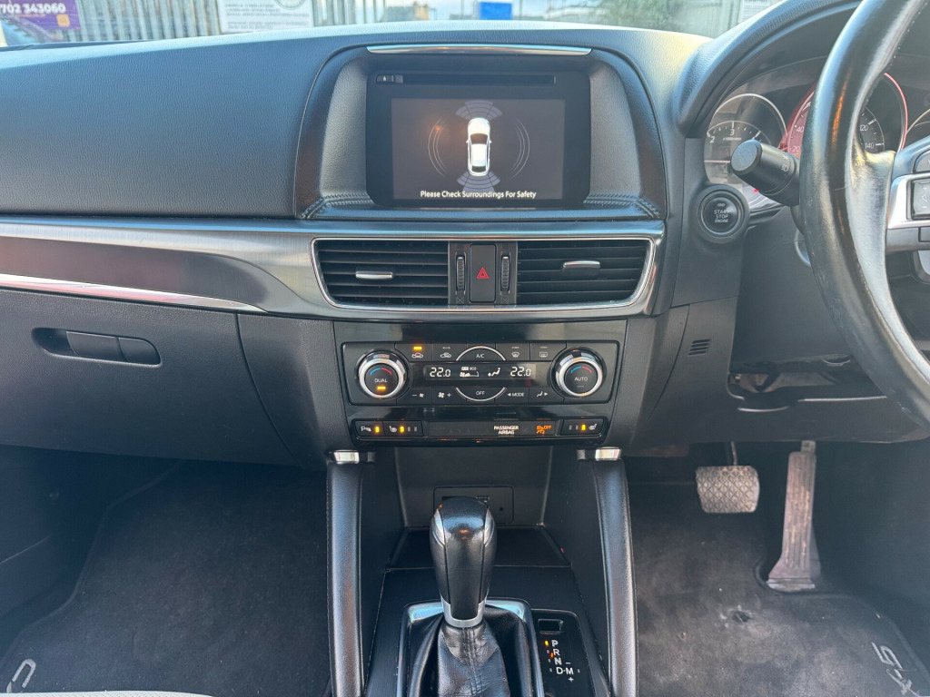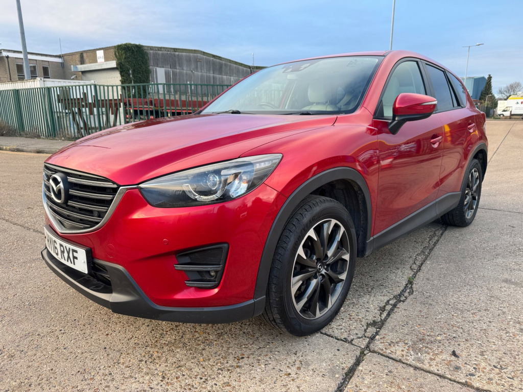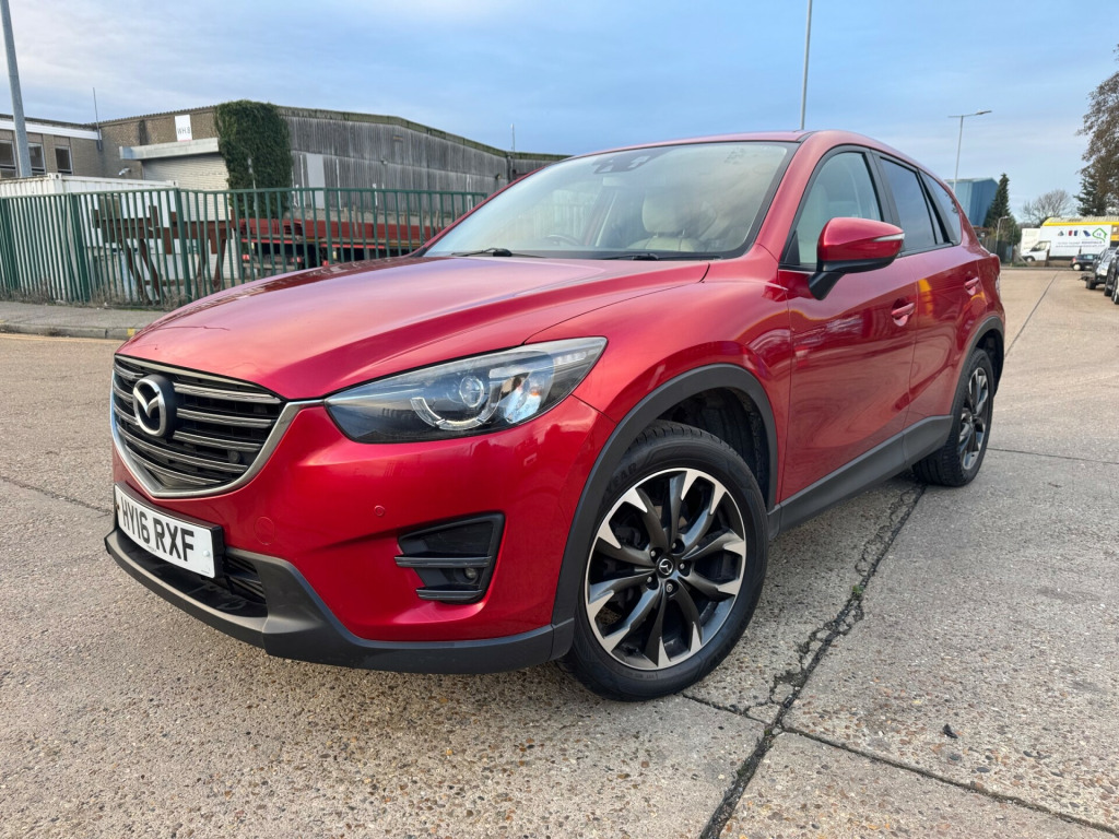 2016 MAZDA CX5 SPORT NAV, 2.2 DIESEL AUTOMATIC, 5 DOORS SUV, ULEZ COMPLAINTS, FULL SERVICE HISTORY, SERVICED AT, 11K, 21K, 28K, 32K, 44K, 51K, 69K, 86K, LONG MOT, 2 REMOTE KEYS, REMOTE CENTRAL LOCKING, FULL CREAM LEATHER, HEATED SEATS, MEMORY SEATS, SATNAV, REVERSE CAMERA, DAB RADIO, CRUISE CONTROL, PARKING SENSORS, BLUETOOTH CONNECTIVITY, ELECTRIC FOLDING MIRRORS, DIAMOND CUT ALLOYS, GET 3 MONTHS OF WARRANTY ON US! THIS CAN ALSO BE EXTENDED FOR UP TO 36 MONTHS (BASED ON THE NEEDS OF THE CUSTOMER). THIS VEHIVLE IS HPI CLEARED AND WILL UNDERGO A FULL MECHANICAL INSPECTION IF AND WHERE NEEDED.IF A VEHICLE NEEDS AN MOT, WE SHALL PROVIDE IT AND DO ANY WORK NECESSARY AT OUR OWN EXPENSE, TO ENSURE THAT YOU, THE CUSTOMER, DRIVE AWAY HAPPILY!WE ARE LOCATED IN SHOEBURYNESS SOUTHEND-ON-SEA, ESSEX. WE CAN ARRANGE FOR COMPLIMENTARY COLLECTION FROM ANY TRAIN STATION BASED IN SHOEBURYNESS, IF NEEDED.PLEASE BOOK AN APPOINTMENT AND CONTACT US BEFORE YOU DEPART TO ENSURE THAT THE CAR IS READY FOR VIEWING.IF THERE IS ANYTHING ELSE YOU DESIRE TO KNOW, PLEASE FEEL FREE TO GET IN TOUCH FOR MORE INFORMATION. r conditioning, bluetooth connection, climate control, colour satnav, comms pack, door mirrors electrically foldable, dual climate zones, full leather, keyless go, memory seats, rain-sensing wipers, usb/ipod interface, xenon headlamps, adjustable steering column, blind spot information, cruise control, digital instrument cluster, esp, multi-function steering wheel, parking camera, parking sensors, power steering, rear parking sensor, stability control, steering wheel reach adjustment, traction control, trip computer, abs, air bag, brake assist, child locks, isofix child seat anchor points, multiple airbags, passenger airbag, service indicator, side air bags, twin air bags, tyre pressure monitor, alarm, immobiliser, keyless entry, locking wheel nuts, privacy glass, remote central locking