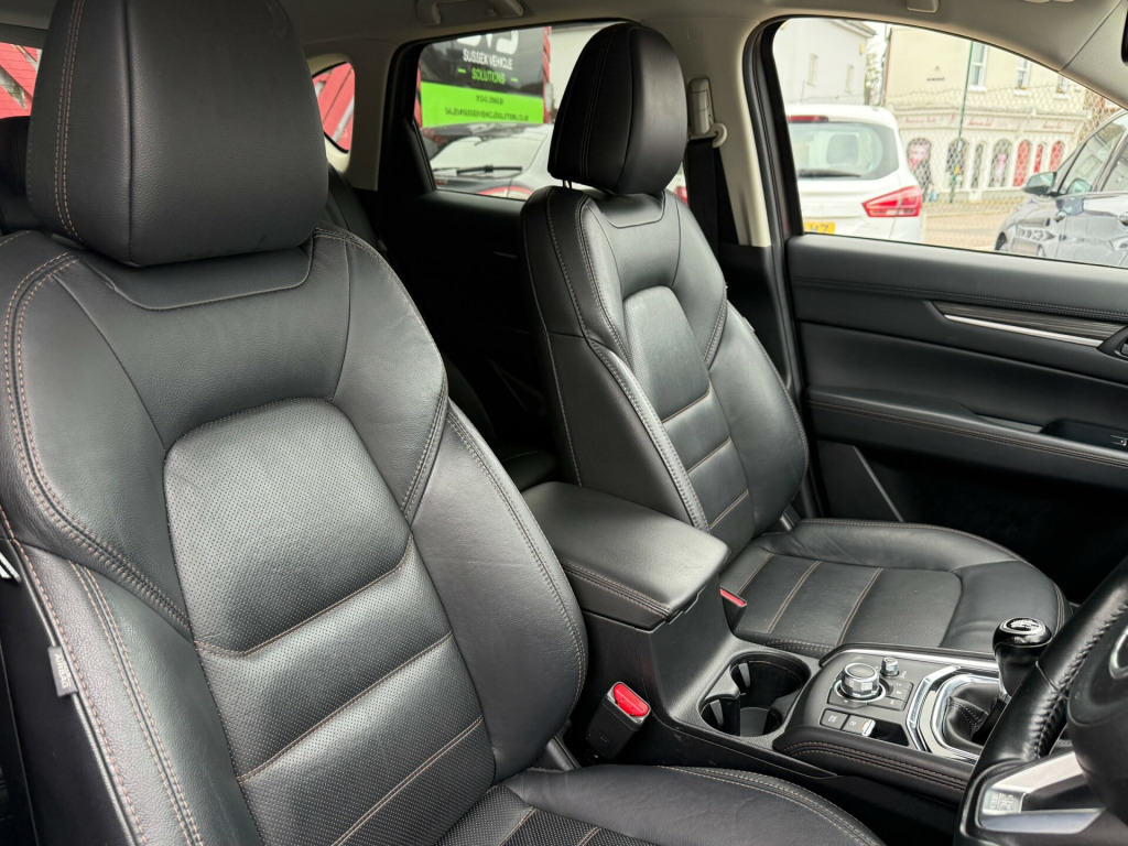 Sussex Vehicle Solutions Ltd are delighted to present this Mazda CX-5 2.2 SKYACTIV-D Sport Nav+ Euro 6. Please see the specification below. This Mazda CX-5 will be sold with a minimum of 6 months MOT and 3 months warranty extendable to 12 months. Sussex Vehicle Solutions is a family run business who pride themselves on giving excellent customer service in a pressure-free environment. If you have any questions, please do not hesitate to get in touch. in alloy wheels - metallic, bumpers - body coloured, door mirrors - electrically adjustable - heated - power folding with integrated indicator lights, electric windows - front and rear with one-touch auto down - up, emergency tyre repair kit, privacy glass - rear and rear side windows, spoiler - rear roof body coloured, 7in colour touch screen display, aux and usb input, integrated bluetooth, luggage compartment - power outlet, mazda navigation system - european mapping with alternative route calculations - point of interest search and 3-years free map updates, premium bose centrepoint surround sound system, shark fin antenna, usb - ipod connectivity, abs - anti lock braking system, advanced smart city brake support, auto door locking, dual front airbags, dynamic stability control with traction control system, electronic parking brake with auto-disengage function, front passenger airbag cut-off switch, front side airbags, front and rear curtain airbags, hill hold assist, isofix child seat anchorage for outer rear seats, lane keep assist with lane departure warning system, remote central locking with deadlocking, scr - secondary collision reduction, seatbelt reminder for front and rear, seatbelts - front - 3 point - elr x 2 with pre-tensioners, seatbelts - rear - 3-point - elr, smart brake support with forward obstruction warning, smart remote keyless entry system, thatcham category 1 alarm and immobiliser, wipers - rear adjustable speed with intermittent, advanced blind spot monitoring with rear cross traffic alert, front and rear parking distance sensors, mazda radar cruise control, meter set display - window projection colour active driving display with traffic sign recognition - colour head-up display - shows vehicle speed - warnings and turn-by-turn navigation, multimedia commander, power assisted steering - electronic, reversing camera, trip computer, i-stop status, air conditioning - dual zone climate control, auto dimming rear view mirror, dome interior courtesy light with integrated spotlight, door pockets - driver - front passenger and rear, engine start-stop button, front centre console with storage box, front wiper de-icer, gear shift - leather-wrapped, glovebox illumination, grab handles - front passenger and two rear with coat hooks, head restraints - rear x3, heated front seats with 3-stage settings, karakuri tonneau cover, luggage compartment - light, power liftgate, rain-sensing front wipers, rear air vents, rear seats - centre armrest with two cupholders, rear seats - manual recline adjustment, seat - 40-20-40 karakuri fold flat rear, seatback pocket - driver and front passenger, seats - drivers power lumbar adjustment, seats - drivers power slide-recline and height adjustment with memory function linked to smart key, seats - passengers power slide-recline and height adjustment, steering wheel - heated, steering wheel - leather wrapped, steering wheel - mounted audio and bluetooth controls, steering wheel - tilt and height adjustment, storage spaces - inside front centre armrest, sunvisors - drivers and passengers with covered vanity mirror-ticket holder-illumination, two cup holders between driver and passenger seat, dusk sensing automatic headlights, front fog lights - led, headlights - adaptive front lighting system, headlights - coming-leaving home, headlights - led with auto headlight levelling, high beam control, led daytime running lights