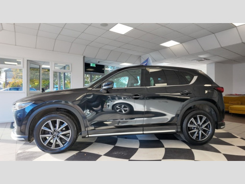 The Mazda CX-5 Sport Nav 4WD is one of the most refined and capable SUVs in its class ? combining sharp design, premium quality, and a rewarding drive. This 2018 example, with the sought-after 2.2 Skyactiv-D engine, manual gearbox, and Sport Nav specification, is presented in superb condition throughout and drives beautifully.Finished in stunning black metallic, this CX-5 looks stylish and modern from every angle. The bold front grille, LED headlights, and 19-inch diamond-cut alloy wheels give it real road presence. Paintwork and body panels are in excellent condition, reflecting careful ownership.  Interior Step inside and you?ll find a luxurious and tech-filled cabin finished in high-quality materials. The Sport Nav trim is the range-topping specification and includes: Full black leather interior Heated front seats and electric driver?s seat with memory Touchscreen infotainment system with satellite navigation Reversing camera and front/rear parking sensors Premium Bose sound system Bluetooth and USB connectivity Dual-zone climate control Multifunction steering wheel Keyless entry and start Cruise control Heads-up display (HUD) Auto headlights and wipers The cabin is clean, quiet, and extremely comfortable ? a genuine pleasure for both driver and passengers.  Performance & Efficiency Powered by Mazda?s acclaimed 2.2 Skyactiv-D engine, this CX-5 delivers strong performance with excellent fuel economy. Powerful yet efficient 2.2-litre diesel engine 6-speed manual gearbox ? smooth and precise 4WD system for extra grip and confidence in all conditions Economy up to 50+ MPG combined Refined, quiet, and engaging to drive 17in Alloy Wheels, ABS, Adjustable Steering, Air Conditioning, Alarm, Alloy Wheels, Bluetooth, Body Coloured Bumpers, CD Player, Central Locking, Climate Control, Cruise Control, ESP, Electric Adjustable Seats, Electric Heated Seats, Electric Mirrors, Electric Windows, Engine Immobiliser, Folding Rear Seats, Four Wheel Drive, Front Airbags, Front Fog Lights, ISOFix Anchor Point, MOT, Parking Sensors, Radio, Satellite Navigation, Service History, Start Stop System, Steering Wheel Controls, Sunroof, Traction Control, V5 Registration Document