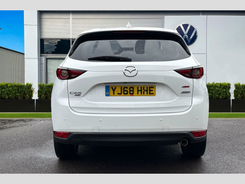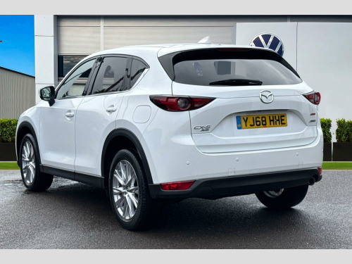 Have a look at this Mazda CX-5 that is now available at Wrexham Volkswagen. This Mazda is powered by a 2.2L diesel engine that produces 181 BHP with automatic transmission and four wheel drive. The exterior is finished in a white paintwork, which is complimented by the 19in alloy wheels to the side. To the front of the vehicle you'll find the LED headlights that provide exceptional visibility, rear tinted windows for passenger privacy, keyless entry and electric tailgate for convenient accessibility, and parking sensors that assist with maneuvering alongside the rear view camera.