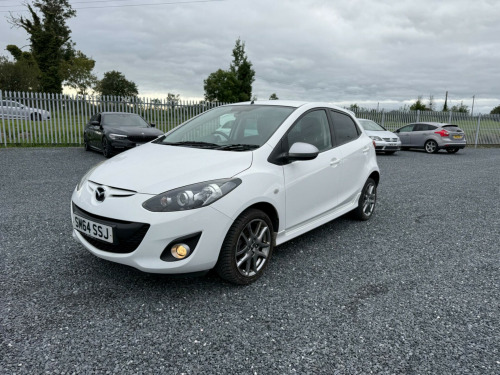 Mazda 2 Sport 1.4i 16V Venture Edition 5drRegistered January 2015Warranted 122348 UK Miles With Service History & Verified VOSA MOT History.Full 12 Months MOTRoad Tax Only £35 Per AnnumFinished In Unmarked Alpine White With Grey Chequered Cloth Trim.Power Steering, Electric Windows, Electric Folding Door Mirrors, Air Conditioning, Trip Computer, Colour Screen Satellite Navigation, Bluetooth Connectivity, Multi Function Leather Steering Wheel, Rear Parking Sensors, Front Fog Lamps, Alloys Wheels, Remote Central Locking With Factory Alarm & Immobiliser.Part Exchange & All Dealer Facilities Available.Viewing By Appointment 7 Days.Signature Cars Of Portadown Best Value Approved Used Cars In Northern Ireland.***Check Out Our 5Star Reviews On Line*** in alloy wheels - bright finish, abs - anti lock braking system, air conditioning - climate control, airbags - curtain front, airbags - driver, airbags - front passenger, alpine navigation system, audio panel - dark grey gloss, auxillary jack for connecting mp3 players, bluetooth hands free system, bumpers - body coloured, door mirrors - bright silver, door mirrors - electrically adjustable-heated-folding-body coloured, dusk sensing automatic headlights, eba - emergency brake assist, ebd - electronic brakeforce distribution, electric windows - rear, front fog lights, gear knob - leather, grey contrast stitching wheel - handbrake and seats, headlights - halogen, isofix child seat anchorage for outer rear seats, inner door trim - dark grey gloss, outer air vent louvers - dark grey gloss, pollen filter, power assisted steering, rain-sensing front wipers, rear parking sensors, remote central locking, satellite navigation - 46 european country maps, satellite navigation - 50-50 split screen, seats - 60-40 split folding rear, seats - drivers manual height adjustment, side airbags, side skirts, single cd player - mp3 compatibility, spoiler - rear, sports styling kit, steering wheel - height adjustment, steering wheel - leather, steering wheel - mounted remote audio controls, steering wheel spokes - dark grey gloss, temporary size spare wheel, thatcham category 1 alarm and immobiliser, three height adjustable rear head restraints, touch screen - 6.1in, trip computer, tyre pressure monitoring system, usb connection