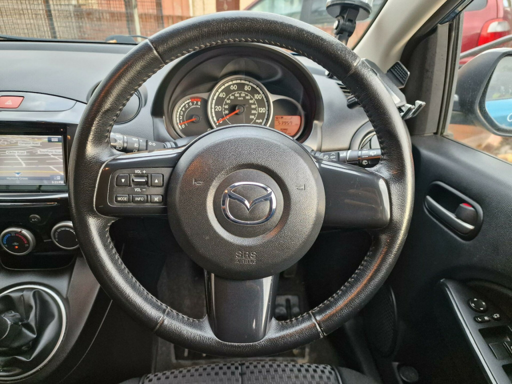 This 2014 Mazda2 Sport Venture is a standout example, boasting exceptionally low mileage for its age at just 53,900 miles and having been cared for by only one owner. This stylish hatchback is equipped with a responsive 1.3L petrol engine and features a premium Alpine Navigation System complete with a branded sound system for your entertainment. Convenience is key with this model, offering Bluetooth hands free connectivity for calls on the go, and dusk sensing automatic headlights that illuminate the road ahead without you needing to lift a finger. For added peace of mind when parking, rear parking sensors are included, and you can always ensure a comfortable cabin temperature thanks to the air conditioning with climate control.The Mazda2 Sport Venture offers a compelling package that makes it an excellent choice compared to other vehicles in its class. Its impressive fuel economy of 57 miles per gallon means fewer trips to the petrol station, and its low insurance group rating helps to keep your running costs down. Furthermore, its low CO2 emissions contribute to a more environmentally friendly drive. This combination of economical running costs, desirable features, and excellent provenance makes this Mazda2 a truly attractive proposition.. 16in Alloy Wheels - Bright Finish, ABS - Anti Lock Braking System, Air Conditioning - Climate Control, Airbags - Curtain Front, Airbags - Driver, Airbags - Front Passenger, Alpine Navigation System, Audio Panel - Dark Grey Gloss, Auxillary Jack for Connecting MP3 Players, Bluetooth Hands Free System, Bumpers - Body Coloured, Door Mirrors - Bright Silver, Door Mirrors - Electrically Adjustable-Heated-Folding-Body Coloured, Dusk Sensing Automatic Headlights, EBA - Emergency Brake Assist, EBD - Electronic Brakeforce Distribution, Electric Windows - Rear, Front Fog Lights, Gear Knob - Leather, Grey Contrast Stitching Wheel - Handbrake and Seats, Headlights - Halogen, ISOFIX Child Seat Anchorage for Outer Rear Seats, Inner Door Trim - Dark Grey Gloss, Outer Air Vent Louvers - Dark Grey Gloss, Pollen Filter, Power Assisted Steering, Rain-Sensing Front Wipers, Rear Parking Sensors, Remote Central Locking, Satellite Navigation - 46 European Country Maps, Satellite Navigation - 50-50 Split Screen, Seats - 60-40 Split Folding Rear, Seats - Drivers Manual Height Adjustment, Side Airbags, Side Skirts, Single CD Player - MP3 Compatibility, Spoiler - Rear, Sports Styling Kit, Steering Wheel - Height Adjustment, Steering Wheel - Leather, Steering Wheel - Mounted Remote Audio Controls, Steering Wheel Spokes - Dark Grey Gloss, Temporary Size Spare Wheel, Thatcham Category 1 Alarm and Immobiliser, Three Height Adjustable Rear Head Restraints, Touch Screen - 6.1in, Trip Computer, Tyre Pressure Monitoring System, USB Connection.