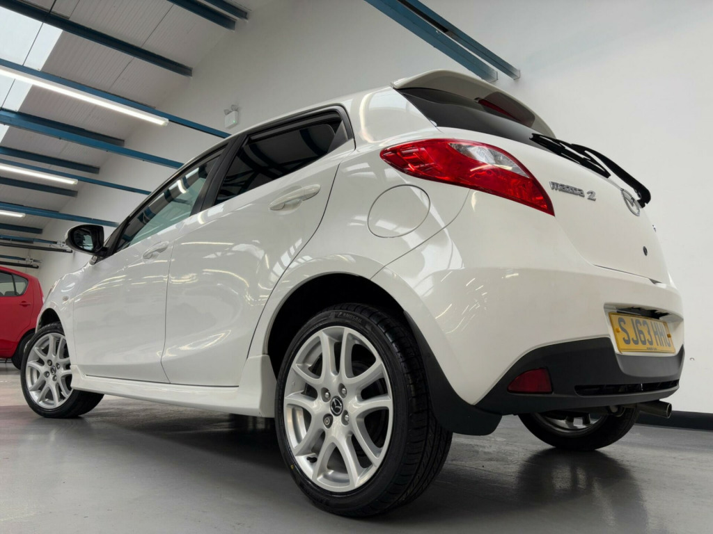 ***£35 Road tax***For more information, contact Matt: 07555 272603. This 2013 Mazda2 Tamura is a great find, boasting an incredibly low mileage of just 29,000 genuine miles by its one lady owner from new. This well maintained 1.3 litre petrol model has an efficient, reliable engine and offers a comfortable driving experience. Mechanically sound, runs and drives excellent, the car has recently had an oil service at the current mileage and 4 brand new tyres to rectify the advisory notice for the tyres on the current MOT. (MOT'd until 02/09/2026). There is a service history, original Mazda floor mats, and a spare key here with the car and it's now fully prepared and ready to drive away. Finished in Crystal White Pearl, this practical 5 door Tamura presents very well and has been kept in lovely condition by its one and only owner, in particular, the alloy wheels are in excellent condition- there's no corrosion or curb damage, and as mentioned, are wrapped in brand new tyres. The exterior is in excellent condition and the spacious, stylish interior is lovely throughout; including in the boot where there is a spare wheel and tool kit stored under the carpet. The Mazda2 Tamura stands out with its impressive fuel economy, achieving an excellent 57 miles per gallon, which is significantly better than many other cars in its class. Furthermore, its low insurance group rating and low CO2 emissions make it a very economical choice to own and run, offering great value for money. oth - black, 16in alloy wheels, air conditioning, seats - drivers lift mechanism, airbags - curtain front, airbags - driver, airbags - front passenger, anti lock braking system, auxillary jack for connecting mp3 players, bumpers - body coloured, door mirrors - electrically adjustable-heated-folding-body coloured, electric power folding door mirrors, eba - emergency brake assist, ebd - electronic brakeforce distribution, electric windows - front, electronic power assisted steering, headlights - halogen, isofix with top tether anchor, radio-cd, remote central locking, seats - 60-40 split folding rear, seats - drivers height adjustment with head restraints - height adjustment, side airbags, sports styling kit, steering wheel - height adjustment, steering wheel - leather, steering wheel - mounted remote audio controls, temporary size spare wheel, thatcham category 1 alarm and immobiliser, three height adjustable rear head restraints, trip computer
