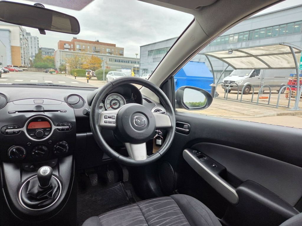 Selekt Motors are delighted to present this lovely Mazda 2 petrol WITH PARKING SENSORS!!! Its a Beautiful car with a lovely interior. It Drives very smoothly and super comfortable to be in. This car has a very cheap insurance and road tax. Cheap to run AND very ECONOMICAL overall. ? PARKING SENSORS ? 85k miles? 2 Keys ? 1 YEAR LONG MOT ? 1L Petrol? ULEZ FREE ? Only 2 owners ? Space Saver Wheel ?Very economical ? Comes as warranty packages? We do delivery all over uk ? for further information give us a call and our team will help you find the best car for you . s - anti lock braking system, aux socket, air conditioning, airbags - curtain front, airbags - driver, airbags - front passenger, central locking - remote with deadlocking, centre console floor mounted with cupholder, eba - emergency brake assist, ebd - electronic brakeforce distribution, electric windows - front, electrically adjustable-heated door mirrors, isofix child seat anchorage for outer rear seats, power assisted steering, seats - 60-40 split folding rear, side airbags, steering wheel - leather, thatcham category 1 alarm and immobiliser