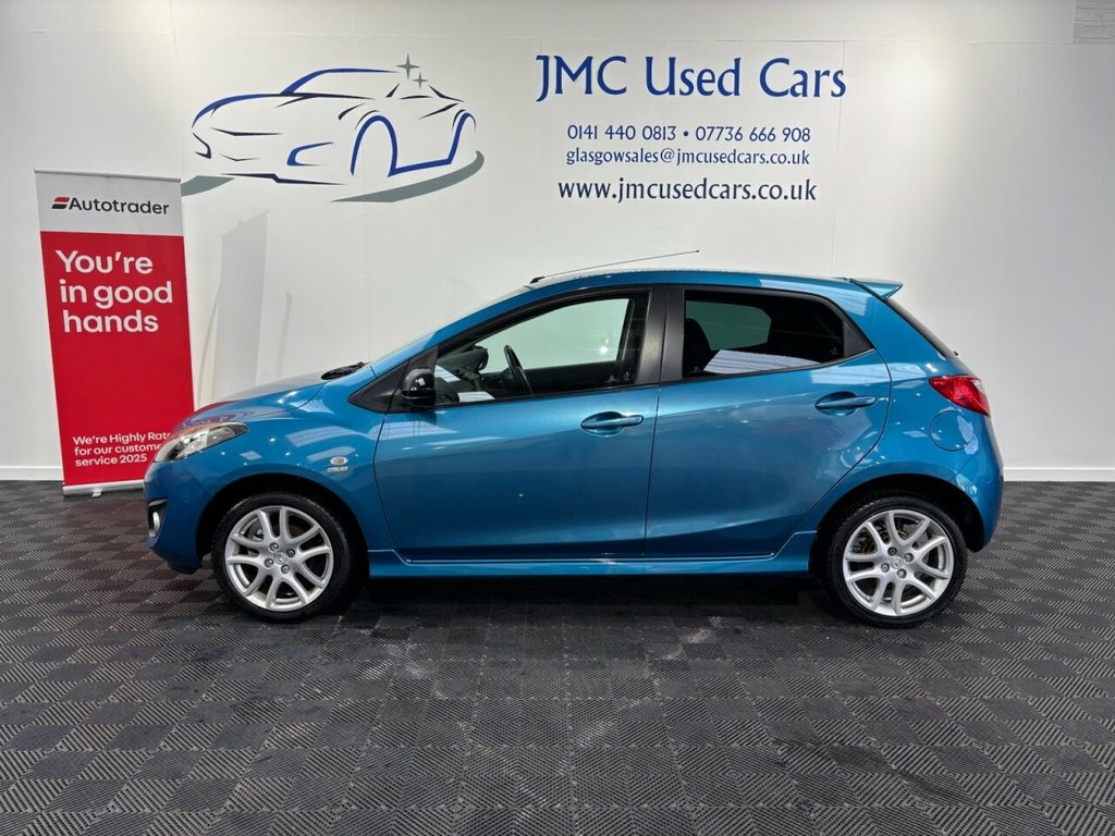The Mazda 2 1.3 Venture Edition offers a compelling mix of style, practicality and economy — it comes generously equipped (with items like 16″ alloy wheels, sat-nav, Bluetooth, climate control and sports trim) for the price. Inside Mazda Its lightweight design and 1.3 litre petrol engine deliver good fuel efficiency (around 56 mpg combined) and relatively low CO? emissions (~115 g/km). Being a five-door hatch, it offers sensible everyday usability, plus the driving experience is reported to be sharp, engaging and reliable — a solid choice for those seeking an affordable yet well-rounded small car. Award-Winning Family Business | Premium Customer Service & Aftercare Located just off Junction 24 of the M8 in Glasgow, we offer an impressive range of quality used cars, all displayed in our indoor showroom. Each vehicle is meticulously prepared to meet our high standards, ensuring you're driving away with complete confidence. We welcome part exchanges and offer tailored finance and warranty packages to suit every budget. Need help choosing the right car? Our team is here to provide expert advice and support. Can't make it in person? No problem! We offer live video walkarounds of our cars upon request, and you can complete all finance agreements securely online. For more details or to arrange a viewing, contact Martin today. Aquatic Blue, 16in Alloy Wheels - Bright Finish, ABS - Anti Lock Braking System, Air Conditioning - Climate Control, Airbags - Curtain Front, Airbags - Driver, Airbags - Front Passenger, Auxillary Jack for Connecting MP3 Player, Bluetooth Hands Free System, Bumpers - Body Coloured, Bumpers - Rear Sports Trim, Door Mirrors - Electrically Adjustable-B, Dusk Sensing Automatic Headlights, EBA - Emergency Brake Assist, EBD - Electronic Brakeforce Distribution, Electric Windows - Front and Rear with O, Front Fog Lights, Headlights - Halogen, ISOFIX with Top Tether Anchor, Pollen Filter, Power Assisted Steering, Privacy Glass, Radio-CD, Rain-Sensing Front Wipers, Rear Parking Sensors, Remote Centra