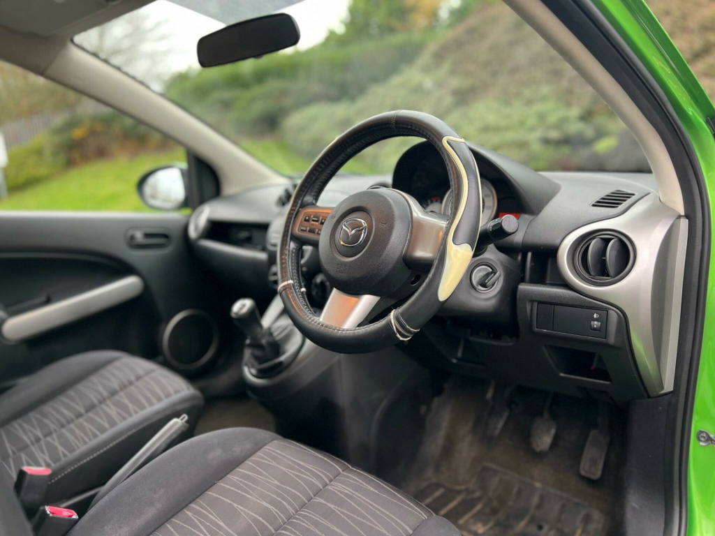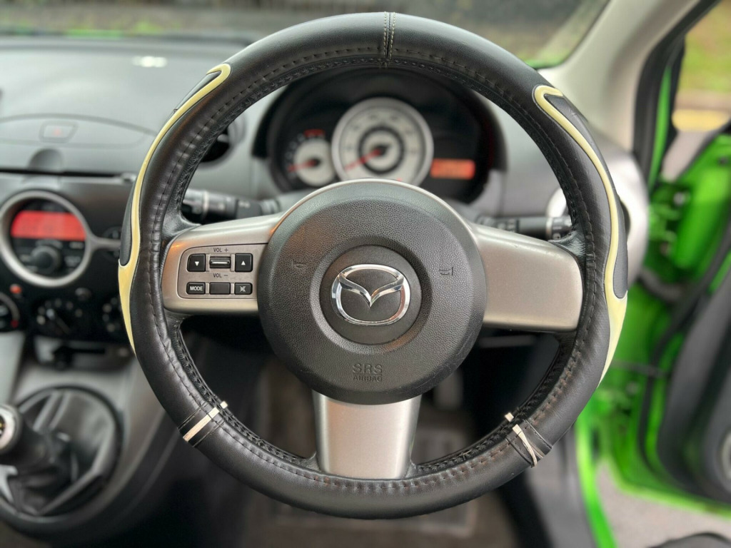 2009 Mazda 2 1.4 diesel finished in green. Only 87800 warranted miles on the clock. MOT til 15th September 2026. Only £35 for yearly road tax! 3 former keepers from new. Car drives well with no mechanical faults. Full V5 available. Comes with a top spec including; alloy wheels, leather steering wheel, multi-functional steering wheel, Radio/CD, electric windows, central locking, AC/Climate control, electric folding mirrors, TPMS, cup holders and many more. Nationwide Delivery Available. P/X Welcome. HPI Clear. Any questions don't hesitate to contact us on 07443456706 s - anti lock braking system, aux socket, air conditioning, airbags - curtain front, airbags - driver, airbags - front passenger, central locking - remote with deadlocking, centre console floor mounted with cupholder, eba - emergency brake assist, ebd - electronic brakeforce distribution, electric windows - front, electrically adjustable-heated door mirrors, isofix child seat anchorage for outer rear seats, power assisted steering, seats - 60-40 split folding rear, side airbags, steering wheel - leather, thatcham category 1 alarm and immobiliser