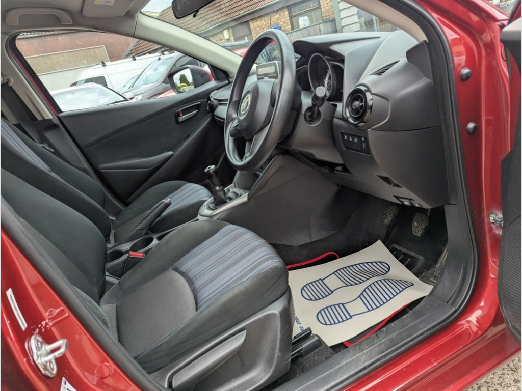 BRISTOL CAZ THIS 2016 MAZDA2 1.5i SKYACTIV-G SE 5 DOOR MANUAL IN METALLIC SOUL RED WITH CONTRASTING BLACK CLOTH INTERIOR CD MEDIA SYSTEM WITH BLUETOOTH AND AUX..2 KEYS ELECTRIC WINDOW NEW MOT AND OIL SERVICE ON PURCHASE 3 FORMER KEEPERS BRISTOL CLEAN AIR ZONE FRIENDLY SUPERB VALUE AND ONLY £20 ROAD TAX 15in Steel Wheels, ABS - Anti Lock Braking System, Air Conditioning, Airbags - Front Passenger Deactivation S, AM-FM Radio - Single CD Player-MP3 Audio, AUX and USB Input, Body Coloured Door Mirrors, Cloth - Black, Dashboard Panel - Black, Door Handles - Body Coloured, Door Mirrors - Electrically Adjustable w, Door Pockets - Front, Dual Front Airbags, Dynamic Stability Control - DSC - with T, Electric Windows - Front with One Touch , Electronic Power Assisted Steering, Emergency Stop Signalling System - ESS, Engine Start-Stop Button, Front and Rear Curtain Airbags, Front Passengers Seat - Manual Slide and, Front Side Airbags, Gear Shift Indicator, Glovebox, Grab Handles - Front Passenger and