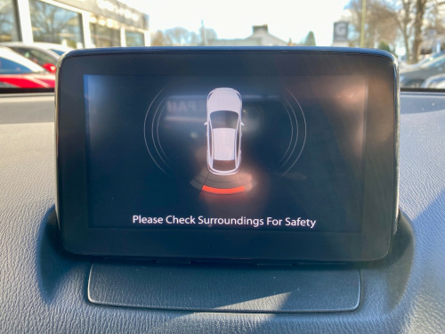 in alloy wheels, door mirrors - electrically adjustable - heated - power folding with integrated indicator lights, electric windows - front and rear with one touch auto up and down on drivers side, tyre repair kit, 7in colour touch screen display, am-fm dab radio - single cd player-mp3 audio system with 4 speakers, aux and 2 usb inputs, integrated bluetooth system, mzd-connect, satellite navigation system, abs - anti lock braking system, dual front airbags, dynamic stability control - dsc - with traction control system - tcs, emergency stop signalling system - ess, front passenger airbag cut-off switch, front side airbags, front and rear curtain airbags, g-vectoring, hill hold assist, isofix child seat anchorage - attached to outer rear seats, remote central locking with deadlocking, srs - supplementary restraint system, seatbelt - reminder screen - driver - passenger and rear seats with audible warning, seatbelts - front - 3 point - elr x 2 with pre-tensioners, seatbelts - rear - 3-point - elr x 2 with pre-tensioners, self-supporting rigid and torsion-resistant all-steel body with defined crush zones for the front and rear sections - stable passenger safety cell with side impact reinforcement in the doors, smart city brake support, thatcham category 1 alarm and immobiliser, wipers - rear adjustable speed with intermittent, air conditioning - climate control, courtesy light with integrated spotlight, dashboard panel - black gloss, door pockets - driver and front passenger, engine start-stop button, front passenger seat - manual height adjustment, front passengers seat - manual slide and recline adjustment, gear knob - leather, glovebox, grab handles - front passenger and two rear with coat hooks, handbrake - leather wrapped, luggage compartment - light, rain-sensing front wipers, seatback pocket - front passenger, seats - 60-40 split folding rear, seats - drivers manual slide-recline and height adjustment, steering wheel - leather, steering wheel - mounted remote audio controls, steering wheel - telescopic and tilt adjust, sunvisors - drivers and front passengers with covered vanity mirror and drivers ticket holder, three height adjustable rear head restraints, wipers - front adjustable speed with intermittent, analogue speedometer, cruise control with adjustable speed limiter, electronic power assisted steering, gear shift indicator, lane departure warning system, multimedia commander, rear parking sensors, trip computer, tyre pressure monitoring system, i-stop status, dusk sensing automatic headlights, front fog lights - led, halogen daytime running lights, headlights - coming-leaving home, headlights - halogen with manual headlight levelling