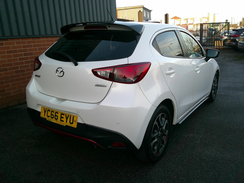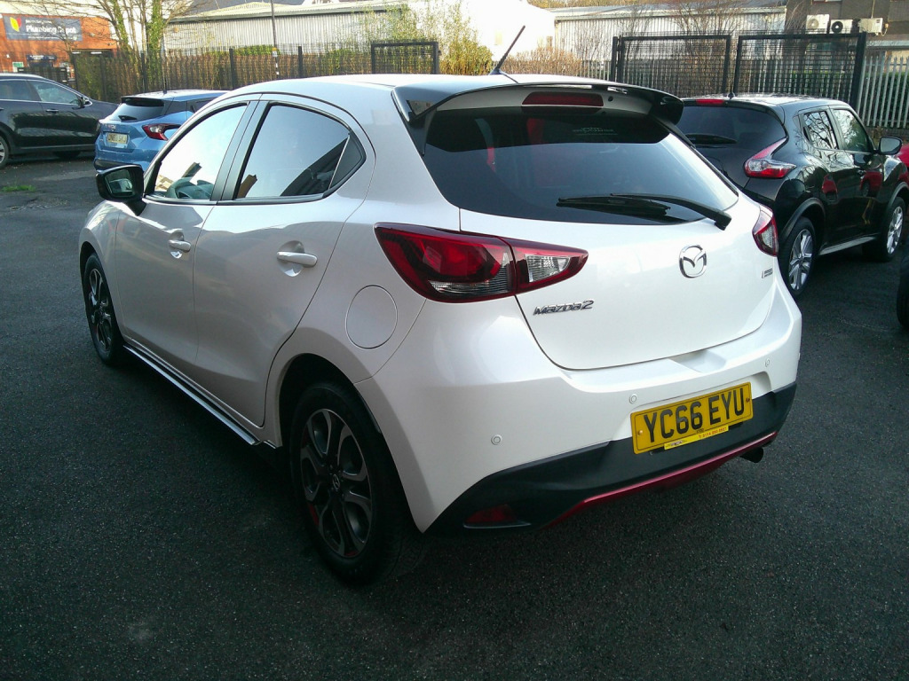 This 2016 Mazda2 SKYACTIV-G Sport Black boasts an MOT valid until September 2026, offering excellent peace of mind. This particular Mazda2 is a 1.5 litre petrol model, finished in the Sport Black trim and meets Euro 6 emissions standards. It comes with a 3 month warranty and has a clear vehicle history check. The last service was completed on 2025-12-15 at 62,360 miles, and it benefits from partial service history. Notable features include air conditioning, rear parking sensors, an integrated Bluetooth system, and dusk sensing automatic headlights. , This Mazda2 is designed to impress with its performance and efficiency. It achieves an impressive 63 mpg, demonstrating its excellent fuel economy, and has low CO2 emissions. The acceleration from 0-62mph in just 9.4 seconds indicates that this vehicle performs better than many others in its class.. , Standard spec, , 16in Alloy Wheels - Gunmetal, 7in Colour Touch Screen Display, ABS - Anti Lock Braking System, AM-FM-DAB Radio - Single CD Player-MP3 Audio System with 6 Speakers, AUX and 2 USB Inputs, Adjustable Speed Limiter, Air Conditioning, Airbags - Front Passenger Deactivation System, Body Coloured Door Mirrors, Brilliant Black Front Skirt, Brilliant Black Side Skirts, Courtesy Light with Integrated Spotlight, Cruise Control, Dashboard Panel - Black - Soft-touch with Red Stitching, Door Handles - Body Coloured, Door Mirrors - Electrically Adjustable - Heated - Power Folding with Integrated Indicator Lights, Door Pockets - Front, Dual Front Airbags, Dusk Sensing Automatic Headlights, Dynamic Stability Control - DSC - with Traction Control System - TCS, Electric Windows - Front and Rear with One Touch Auto Up and Down on Drivers Side, Electronic Power Assisted Steering, Emergency Stop Signalling System - ESS, Engine Start-Stop Button, Exhaust Tailpipes - Chrome Trim, Front Fog Lights, Front Passengers Seat - Manual Slide and Recline Adjustment, Front Side Airbags, Front and Rear Curtain Airbags, Gear Knob - Leather, Gear Shift Indicator, Glovebox, Grab Handles - Front Passenger and Two Rear with Coat Hooks, Halogen Daytime Running Lights, Handbrake - Leather Wrapped, Headlights - Coming-Leaving Home, Headlights - Halogen, Hill Hold Assist, ISOFIX Child Seat Anchorage for Outer Rear Seats, Integrated Bluetooth System, Lane Departure Warning System, Luggage Compartment - Light, Multimedia Commander, Privacy Glass - Rear and Rear Side Windows, Rain-Sensing Front Wipers, Rear Parking Sensors, Remote Central Locking with Deadlocking, Satellite Navigation System, Seatback Pocket - Passenger Side, Seatbelt Reminder, Seats - 60-40 Split Folding Rear, Seats - Drivers Manual Slide-Recline and Height Adjustment, Smart City Brake Support, Spoiler - Rear Brilliant Black, Steering Wheel - Leather, Steering Wheel - Mounted Audio and Bluetooth Controls, Steering Wheel - Tilt and Height Adjustment, Sunvisors - Drivers with Covered Vanity Mirror and Ticket Holder, Thatcham Category 1 Alarm and Immobiliser, Three Height Adjustable Rear Head Restraints, Trip Computer, Tyre Pressure Monitoring System, Tyre Repair Kit, Wipers - Rear Adjustable Speed with Intermittent