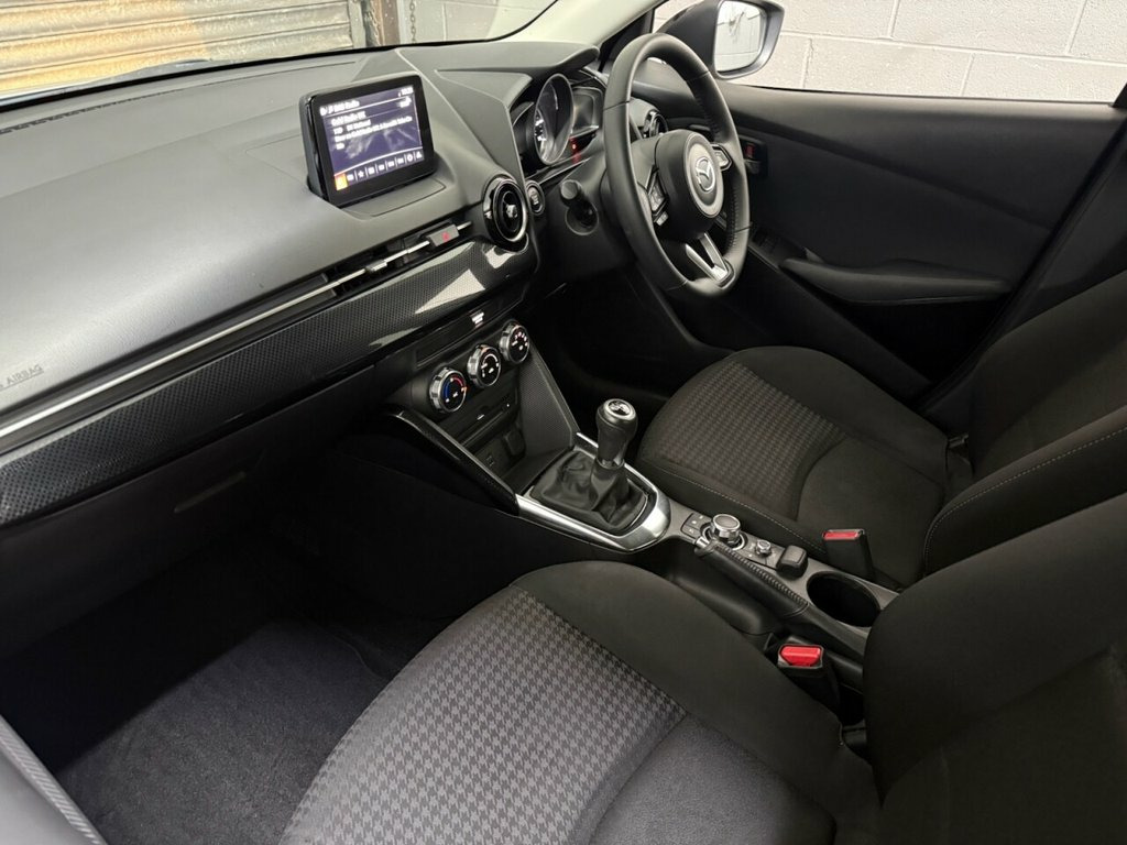 This superb Mazda2 Sport Black+ comes with a full service history and has clearly been well cared for throughout its life. It is lovely and clean inside and out, drives superbly, and offers a perfect blend of reliability, performance and efficiency. Finished in metallic paint with 16-inch gloss black alloy wheels, gloss black mirrors and rear spoiler, and sun protection glass, it really stands out from the crowd. Inside, the cabin feels premium and well equipped, featuring a leather multifunction steering wheel, front and rear electric windows, touchscreen multimedia system with satellite navigation, Bluetooth telephone and audio, DAB digital radio, twin USB inputs, single CD player and twin cup holders. Comfort and convenience are enhanced by cruise control, automatic headlights and wipers, electric folding door mirrors and rear parking sensors, while safety is well covered with ISOFIX child seat points and Mazda's renowned build quality. This is a fantastic example of the Mazda2 Sport Black+, stylish, practical and great fun to drive. It has been maintained to a high standard and is ready to be enjoyed by its next owner. Early viewing and test drive are highly recommended. Ceramic, 16in Alloy Wheels - Black, 7in Colour Touch Screen Display, ABS - Anti Lock Braking System, AM-FM DAB Radio - Single CD Player-MP3 A, AUX and 2 USB Inputs, Air Conditioning - Climate Control, Analogue Speedometer, Black Accent Radiator Grille, Black Mirror Caps Shark Fin Antenna and , Brilliant Black Door Mirrors, Brilliant Black Front and Side Airdam Sk, Brilliant Black Rear Spoiler, Brilliant Black Shark Fin Antenna, Courtesy Light with Integrated Spotlight, Cruise Control with Adjustable Speed Lim, Dashboard Panel - Black Gloss, Door Mirrors - Electrically Adjustable -, Door Pockets - Driver and Front Passenge, Dual Front Airbags, Dusk Sensing Automatic Headlights, Dynamic Stabil