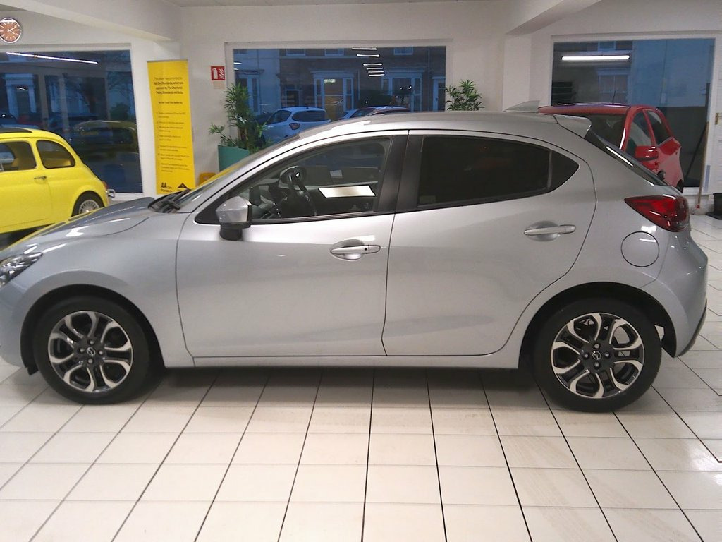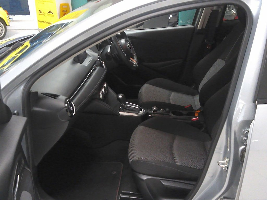 This 2019 Mazda2 SKYACTIV-G Sport Nav+ Automatic is finished in Sonic Silver Metallic with contrast black cloth interior, having covered just 33,400 miles with excellent service history records. This particular model, a Sport Nav+ variant, is powered by an efficient 1.5 litre petrol engine and meets Euro 6 emission standards, contributing to its low CO2 emissions. It comes equipped with desirable features such as climate control with air conditioning, cruise control, Rear park aid, Satellite Navigation and an integrated Bluetooth system for seamless connectivity, and dusk sensing automatic headlights for enhanced visibility. Our advertised price includes a further service, 12 months MOT and a 6 month warranty for complete peace of mind. Further enhancing its appeal, it operates a smart keyless entry for added convenience. The low CO2 emissions highlight its efficiency, indicating it is a more environmentally conscious choice compared to many similar vehicles. This combination of low mileage, desirable features, and efficient performance makes this Mazda2 a compelling option for those seeking a well maintained and economical compact car. Superb to drive with smooth automatic gearbox. We are happy to take your part exchange and guarantee to offer the best price possible for your car. Thinking of car finance? We work with leading car finance specialists to source the best deal for you. With a simple, straight forward application Sonic Silver Metallic, Cloth - Black, 16in Alloy Wheels - Gunmetal, Satellite Navigation System, 7in Colour Touch Screen Display, Rear Parking Sensors, Air Conditioning - Climate Control, Cruise Control with Adjustable Speed Lim, Dynamic Stability Control - DSC - with T, Hill Hold Assist, Lane Departure Warning System, Smart Keyless Entry, Engine Start-Stop Button, Integrated Bluetooth System, AM-FM-DAB Radio - Single CD Player-MP3 A, AUX and 2 USB Inputs, ABS - Anti Lock Braking System, Analogue Speedometer, Brilliant Black Rear Spoiler, Chrome Exhaust Trim, Courtesy Light with Integrated Spotlight, Dashboard Panel - Black - Soft-Touch wit, Door Mirrors - Electrically Adjustable -, Door Poc