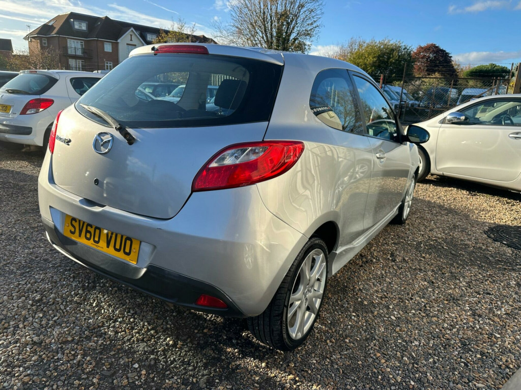 ******* SAME DAY FINANCE AVAILABLE ******** COMES WITH 03 MONTHS FREE WARRANTY ********* **********PERFECT EXAMPLE OF EXCELLENT CAR********* Another Perfect example of 2010 Mazda 2 1.5i Sports 16V SE Special Edition , 5 dr HatchBack , 5 Seats 125 bhp with Metallic Silver Colour and Grey Full Velour Interior which has just covered 62000 miles (warranted) . M A N U A L , 62000 Miles , 2010 MAZDA 2 1.5i Sports 16V SE Special Edition 5 dr HatchBack 125 bhp , 5 Seats , 60 Reg , Metallic Silver Colour , Excellent Condition , Full Grey Velour Interior , Power Steering , Remote Central Locking , Adjustable Steering Column / Wheel , Front and Rear Head Restraints , Immobiliser ,Front and Rear Fog Lights , Traction Control , Iso-fix child seat , A I R C O N D I T I O N I N G / Climate Control , Anchor Points , A B S ,Body colour Bumpers , Multiple Air - bags , Electric Mirrors , Radio / CD Player , Alloy Wheels , Just been Fully Valeted , Full Service History + Old m.o.ts to Prove Mileage , 4 Good Tyres , M.O.T Till JUNE 2026 , Ideal First / Family Car , Very Clean in and out , Cheap to Run and insure , Cheap to Tax , Price for Quick sale . oth- sports- black, abs - anti lock braking system, aux socket, air conditioning - climate control, airbags - curtain front, airbags - driver, airbags - front passenger, central locking - remote with deadlocking, centre console floor mounted with cupholder, dsc - dynamic stability control, eba - emergency brake assist, ebd - electronic brakeforce distribution, electric windows - front and rear, electrically adjustable-heated door mirrors, headlights - automatic levelling, isofix child seat anchorage for outer rear seats, power assisted steering, rain-sensing front wipers, seats - 60-40 split folding rear, side airbags, steering wheel - leather, tcs - traction control system, thatcham category 1 alarm and immobiliser