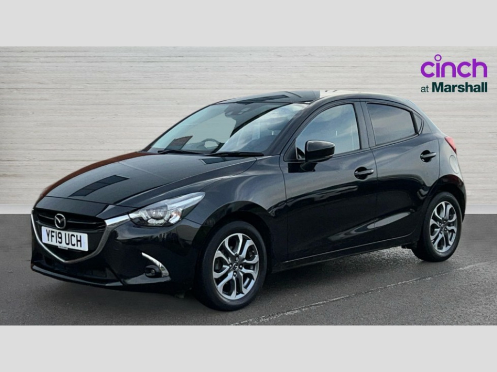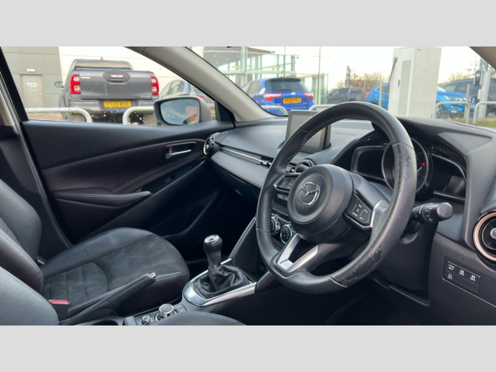 Mazda 2 1.5 115 GT Sport Nav+ 5dr 7" touchscreen with multimedia commander and Aha and Stitcher app, Adjustable speed limiter, Bluetooth hands free telephone connection, Colour head up display, Cruise control, Electric power steering, Emergency stop signalling system, Lane departure warning system, Navigation system, Rear parking sensor, Rear view camera, Trip computer, 6 speakers, Bluetooth audio streaming, DAB Digital radio, Radio/CD and mp3 compatibility, Steering wheel mounted audio controls, USB/iPod/auxiliary input connections, Black rear roof spoiler, Body colour bumpers, Body colour door handles, Chrome exhaust tailpipes, Coming/leaving home lighting function, Dusk sensitive headlamps, Electric folding/heated door mirrors with integrated indicators, Electric front/rear windows with one touch, Front and rear intermittent wipers, LED fog lights, LED headlight and daytime running lights, Privacy glass, Rain sensing front wipers, 60/40 split rear seats, Bluetooth controls on steering wheel, Boot light, Cargo area storage tray, Climate control air conditioning, Coin tray, Driver's seat manual height adjust, Driver's sunvisor with ticket holder, Front and rear door pockets, Front head restraints, Glovebox, Heated front seats, Interior courtesy light, Isofix system on outer rear seats, Leather steering wheel/gearknob/handbrake grip, Passenger seat back pocket, Passenger seat height adjuster, Rear armrest with 2 cupholders, Rear grab handles with coathooks, Rear head restraints, Sun visors with mirrors, Tilt/telescopic adjustable steering wheel, 3 point seatbelts on all seats, ABS, DSC - Dynamic Stability Control, Dual front airbags, Front and rear curtain airbags, Front and rear outer seat belt pre-tensioners, Front side airbags, Hill hold assist, Passenger airbag deactivate switch, Seatbelt warning, Smart City Brake Support - SCBS, Traction control, Tyre pressure monitoring system, Remote central locking, Smart keyless entry, Thatcham category 1 alarm + immobiliser, 16" Grey metallic alloy wheels, Tyre repair kit