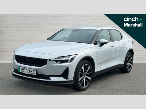 Polestar 2 165kW 64kWh Standard Range Single motor 5dr Auto 11.15 Central display touch screen, 12.3" Active TFT crystal driver's information display, Automatic braking after collision, Bluetooth handsfree system, Cyclist Detection, Driver alert control, Emergency call service, Forward collision warning, Front park assist, Lane keeping aid, Oncoming Lane Mitigation, Progressive steering, Rear park assist, Speed limiter, Steering wheel buttons, Trip computer, 11KW onboard charger, Dynamic chassis, Home charging cable, 7m, Type 2 for mode 3 Public charging cable 3P, 4.5m, 32A 22KW, 2 USB-C connectors front, 2 USB-C connectors rear, DAB Digital radio, High performance audio system with 250W + 8 speakers, Infotainment powered by Android including Google Assistant, Google Maps, Google Play Store, Polestar Connect, Adaptive brake lights with high level LED brake lights, Approach lighting, Automatic dimming interior mirror, Automatic headlight levelling system, Automatic LED Headlights + Active high beam incorporating daytime running lights, Body coloured front grille surround, Electric and heated frameless colour coordinated autofolding side mirrors, Front and rear power windows, Front tread plates, Heated emblem in grille, Heated rear window, LED running lights, Preparation for semi automatic towbar, Rain sensor with automatic windscreen wiper activation, Rear side wing doors, 12V power socket in luggage area, 2 zone electronic climate control, 3 seat bench in 2nd row, Air quality control system, Armrest with cupholder and storage, Bag hooks, Charcoal headlining, Embossed Textile cloth upholstery with 3D Etched deco, Front and rear head restraints, Front footwell illumination, Front reading lights and theatre lighting, Front seats cushion extensions, Front storage compartment, Glovebox bag hook, Heated front seats, Height and reach adjustable steering column with speed sensitive steering, Hexagonal shaped gear shifter with illuminated polestar symbol, High voltage coolant/heater, Humidity sensor, Illuminated vanity mirrors + ticket holder, Interior illumination, ISOFIX attachment front passenger seat, ISOFIX attachment on rear outer seats, One pedal drive with autohold, Power seat with mechanical back rest, height adjustable front seats with multi-directional lumbar support, Rear clothes hook, Rear reading and courtesy lights, Rear seat 40/60 split, Single passenger seat, Textile floor mats, WeaveTech steering wheel, 3x3 point rear seatbelts, Alcolock preparation, Collision avoidance and mitigation by braking and steering, Connected safety with slippery road alert and hazard light alert, Curtain airbags, Driver and front passenger airbags, Electric child locks, Electrical child lock for rear doors and rear windows, Electronic stability control, First aid kit, Front and outer rear seatbelt reminder and pretensioners, Hill start assist, Indirect tyre pressure monitoring system (ITPMS), Inner side airbags, Passenger airbag cut-off switch, Pedestrian detection, Polestar digital key, Power parking brake with auto hold function, Road sign information display, Run off road mitigation and protection, SIPS side airbags, Stability and Traction Control with Spin control, Engine Drag Control and Corner Traction Control, Vehicle deceleration control with Anti-lock Brake System, Electronic Brake Distribution and Emergency Brake Assist, WHIPS whiplash protection system - front, Alarm, Key fob and key tag, Key integrated remote control central locking, Keyless entry with handsfree boot lid opening, Keyless Start, Lockable wheel bolts, Tyre sealant kit and compressor