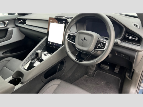 Polestar 2 170kW 78kWh Long Range Single motor 5dr Auto 11.15 Central display touch screen, 12.3" Active TFT crystal driver's information display, Adjustable speed limiter with speed sign support, Adjustable steering force, Apple car play, Automatic braking after collision, Bluetooth handsfree system, Cruise control, Cyclist Detection, Driver alert control, Electric tailgate with soft closing, Emergency call service, Forward collision warning, Front park assist, Integrated e-SIM with constant Internet connectivity, Lane keeping aid with steering support, Oncoming Lane Mitigation, Over the air (OTA) updates for lifetime of the vehicle, Polestar app with vehicle functionality, Progressive steering, Ready to drive notification, Rear park assist, Rear view camera, Steering wheel buttons, Trip computer, 11KW onboard charger, Dynamic chassis, Type 2 Mode 3 charge cable 1P, 230V, 32A, 2.3kW- 7m, Type 2 Mode 3 charge cable 3P, 230V, 16A, 11kW- 6m, 2 USB-C connectors front, 2 USB-C connectors rear, DAB Digital radio, High performance audio system with 250W + 8 speakers, Infotainment powered by Android including Google Assistant, Google Maps, Google Play Store, Polestar Connect, Adaptive LED Headlights, Approach lighting, Auto dimming interior frameless mirror, Auto-dimming full-LED rear light bar with persistent light signature, Automatic dimming exterior mirror, Automatic headlight levelling system, Body coloured front grille surround, Electric and heated frameless colour coordinated autofolding side mirrors, Front and rear power windows, Front tread plates, Heated emblem in grille, Heated rear window, Preparation for semi automatic towbar, Rain sensor with automatic windscreen wiper activation, Rear side wing doors, Rear wiper, Steel roof, Thor's hammer daytime running lights, 12V power socket in luggage area, 2 Front cupholders, 2 rear cupholders, 2 zone electronic climate control, 3 seat bench in 2nd row, Air quality control system, Bag hooks, Charcoal headlining, Cleanzone with pre ventilation + multifilter, Embossed Textile cloth upholstery with 3D Etched deco, Front and rear head restraints, Front armrest with storage compartment, Front footwell illumination, Front reading lights and theatre lighting, Front seats cushion extensions, Front storage compartment, Full parking climate and pre-conditioning, Glovebox bag hook, Heated front seats, Height and reach adjustable steering column with speed sensitive steering, Hexagonal shaped gear shifter with illuminated polestar symbol, High voltage coolant/heater, Humidity sensor, Illuminated vanity mirrors + ticket holder, Interior mid level illumination, ISOFIX attachment front passenger seat, ISOFIX attachment on rear outer seats, Multi directional lumbar support, One pedal drive (regenerative braking), adjustable, Rear clothes hook, Rear reading and courtesy lights, Rear seat 40/60 split, Semi-electric front seats with drivers seat memory, Single passenger seat, Textile floor mats, WeaveTech steering wheel, 3x3 point rear seatbelts, Alcolock preparation, Collision avoidance and mitigation by braking and steering, Connected safety with slippery road alert and hazard light alert, Driver and front passenger airbags, Dual curtain airbags, Dual inner side airbags, Dual Side airbags, Electrical child lock for rear doors and rear windows, Electronic stability control, First aid kit, Front and outer rear seatbelt reminder and pretensioners, Hill start assist, Indirect tyre pressure monitoring system (ITPMS), Passenger airbag cut-off switch, Pedestrian detection, Polestar digital key, Post-impact Braking, Power parking brake with auto hold function, Road sign information display, Run off road mitigation and protection, Safety assistance, Stability and Traction Control with Spin control, Engine Drag Control and Corner Traction Control, Vehicle deceleration control with Anti-lock Brake System, Electronic Brake Distribution and Emergency Brake Assist, Warning triangle, WHIPS whiplash protection system - front, Acoustic vehicle alert system (AVAS), Alarm inclination sensor, Alarm with interior alarm motion sensor, Double-locking door locks, Key integrated remote control central locking, Keyless entry with handsfree boot lid opening, Keyless Start, Lockable wheel bolts, One remote key fob and one waterproof activity key tag, Tyre repair kit