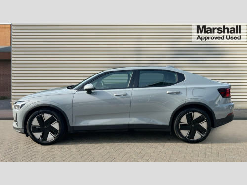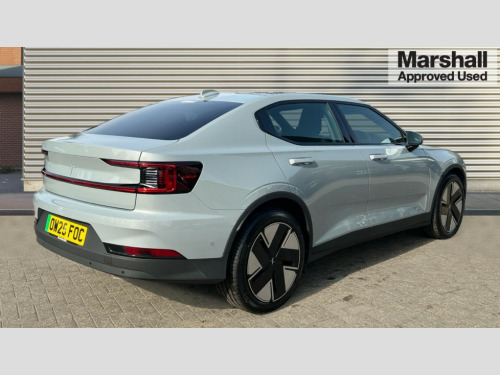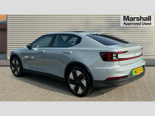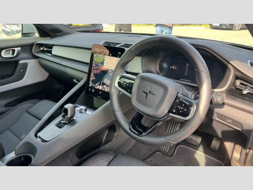 Polestar 2 220kW 82kWh Long Range SM [Plus] 5dr Auto 11.15 Central display touch screen, 12.3" progressive driver's digital display, 360 degree camera, Adjustable speed limiter with speed sign support, Adjustable steering force, Apple car play, Automatic braking after collision, Blind spot information system with steer assist (BLIS), Bluetooth telephony, Cross traffic alert (CTA) with brake support, Cruise control, Cyclist Detection, Driver alert control, Electric tailgate with soft closing, Emergency call service, Forward collision warning, Front park assist, Handsfree tailgate opening with foot sensor, Inductive charging 15W for smart phone, Integrated e-SIM with constant Internet connectivity, Lane keeping aid with steering support, Oncoming Lane Mitigation, Over the air (OTA) updates for lifetime of the vehicle, Park assist side, Polestar app with vehicle functionality, Progressive steering, Ready to drive notification, Rear park assist, Steering wheel buttons, Trip computer, 11 kW AC onboard charger, Dynamic chassis, Type 2 Mode 3 charge cable 3P, 230V, 16A, 11kW- 6m, 2 USB-C connectors front, 2 USB-C connectors rear, DAB Digital radio, Harman Kardon premium sound system, Infotainment powered by Android including Google Assistant, Google Maps, Google Play Store, Polestar Connect, Adaptive LED Headlights, Approach lighting, Auto-dimming full-LED rear light bar with persistent light signature, Automatic dimming interior and exterior mirrors, Automatic headlight levelling system, Body coloured front grille surround, Electric and heated frameless colour coordinated autofolding side mirrors, Emblem in grille, Fixed panoramic sunroof including lit Polestar symbol, Front and rear power windows, Front tread plates, Heated rear window, Heated washer fluid wiper nozzles, Preparation for semi automatic towbar, Rain sensor with automatic windscreen wiper activation, Rear side wing doors, Steel roof, Thor's hammer daytime running lights, Tinted rear windscreen, 12V power outlet - Boot, 2 Front cupholders, 2 rear cupholders, 2 zone electronic climate control, 3 seat bench in 2nd row, Air quality - Advanced cabin sensor and filter, Bag hooks, Charcoal headlining, Cleanzone with pre ventilation + multifilter, Energy saving heat pump, Front and rear head restraints, Front armrest with storage compartment, Front footwell illumination, Front reading lights and theatre lighting, Front seats cushion extensions, Front storage compartment (41 litres), Full parking climate and pre-conditioning, Fully electrical seats including 4-way power lumbar support, driver seat memory, front cushion leg extension and backrest storage nets, Heated front seats, Heated rear seats, Heated steering wheel, Height and reach adjustable steering column with speed sensitive steering, Hexagonal shaped gear shifter with illuminated polestar symbol, High voltage coolant/heater, Hooks on rear B-pillar, Humidity sensor, Illuminated vanity mirrors + ticket holder, Interior high level illumination, ISOFIX attachment on rear outer seats, Lid-in-lid bag holder in rear luggage compartment, One pedal drive (regenerative braking), adjustable, Rear reading and courtesy lights, Rear seat 40/60 split, Single passenger seat, Textile floor mats, WeaveTech steering wheel, 3x3 point rear seatbelts, Alcolock preparation, Collision avoidance and mitigation by braking and steering, Connected safety with slippery road alert and hazard light alert, Driver and front passenger airbags, Dual curtain airbags, Dual inner side airbags, Dual Side airbags, Electrical child lock for rear doors and rear windows, Electronic stability control, First aid kit, Front and outer rear seatbelt reminder and pretensioners, Hill start assist, Indirect tyre pressure monitoring system (ITPMS), Passenger airbag cut-off switch, Pedestrian detection, Polestar digital key, Post-impact Braking, Power parking brake with auto hold function, Road sign information display, Run off road mitigation and protection, Safety assistance, Stability and Traction Control with Spin control, Engine Drag Control and Corner Traction Control, Vehicle deceleration control with Anti-lock Brake System, Electronic Brake Distribution and Emergency Brake Assist, Warning triangle, WHIPS whiplash protection system - front, Acoustic vehicle alert system (AVAS), Alarm inclination sensor, Alarm with interior alarm motion sensor, Double-locking door locks, Key integrated remote control central locking, Keyless entry with handsfree boot lid opening, Keyless Start, Lockable wheel bolts, One key fob and one activity key, Tyre repair kit