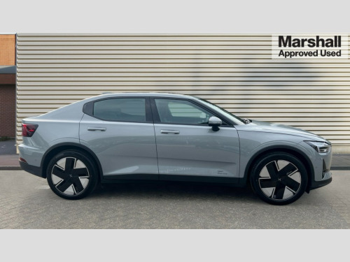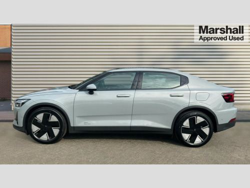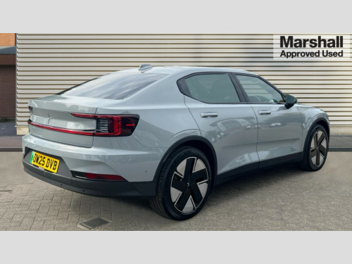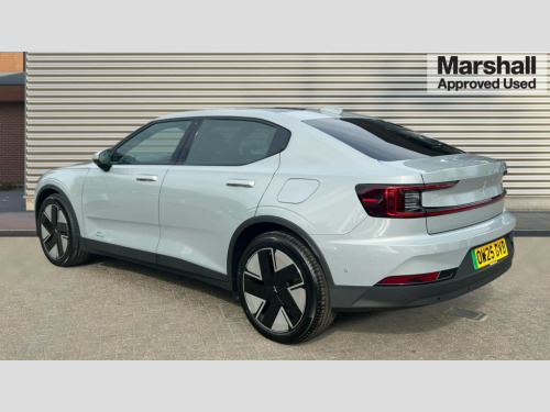 Polestar 2 220kW 82kWh Long Range SM [Plus] 5dr Auto 11.15 Central display touch screen, 12.3" progressive driver's digital display, 360 degree camera, Adjustable speed limiter with speed sign support, Adjustable steering force, Apple car play, Automatic braking after collision, Blind spot information system with steer assist (BLIS), Bluetooth telephony, Cross traffic alert (CTA) with brake support, Cruise control, Cyclist Detection, Driver alert control, Electric tailgate with soft closing, Emergency call service, Forward collision warning, Front park assist, Handsfree tailgate opening with foot sensor, Inductive charging 15W for smart phone, Integrated e-SIM with constant Internet connectivity, Lane keeping aid with steering support, Oncoming Lane Mitigation, Over the air (OTA) updates for lifetime of the vehicle, Park assist side, Polestar app with vehicle functionality, Progressive steering, Ready to drive notification, Rear park assist, Steering wheel buttons, Trip computer, 11 kW AC onboard charger, Dynamic chassis, Type 2 Mode 3 charge cable 3P, 230V, 16A, 11kW- 6m, 2 USB-C connectors front, 2 USB-C connectors rear, DAB Digital radio, Harman Kardon premium sound system, Infotainment powered by Android including Google Assistant, Google Maps, Google Play Store, Polestar Connect, Adaptive LED Headlights, Approach lighting, Auto-dimming full-LED rear light bar with persistent light signature, Automatic dimming interior and exterior mirrors, Automatic headlight levelling system, Body coloured front grille surround, Electric and heated frameless colour coordinated autofolding side mirrors, Emblem in grille, Fixed panoramic sunroof including lit Polestar symbol, Front and rear power windows, Front tread plates, Heated rear window, Heated washer fluid wiper nozzles, Preparation for semi automatic towbar, Rain sensor with automatic windscreen wiper activation, Rear side wing doors, Steel roof, Thor's hammer daytime running lights, Tinted rear windscreen, 12V power outlet - Boot, 2 Front cupholders, 2 rear cupholders, 2 zone electronic climate control, 3 seat bench in 2nd row, Air quality - Advanced cabin sensor and filter, Bag hooks, Charcoal headlining, Cleanzone with pre ventilation + multifilter, Energy saving heat pump, Front and rear head restraints, Front armrest with storage compartment, Front footwell illumination, Front reading lights and theatre lighting, Front seats cushion extensions, Front storage compartment (41 litres), Full parking climate and pre-conditioning, Fully electrical seats including 4-way power lumbar support, driver seat memory, front cushion leg extension and backrest storage nets, Heated front seats, Heated rear seats, Heated steering wheel, Height and reach adjustable steering column with speed sensitive steering, Hexagonal shaped gear shifter with illuminated polestar symbol, High voltage coolant/heater, Hooks on rear B-pillar, Humidity sensor, Illuminated vanity mirrors + ticket holder, Interior high level illumination, ISOFIX attachment on rear outer seats, Lid-in-lid bag holder in rear luggage compartment, One pedal drive (regenerative braking), adjustable, Rear reading and courtesy lights, Rear seat 40/60 split, Single passenger seat, Textile floor mats, WeaveTech steering wheel, 3x3 point rear seatbelts, Alcolock preparation, Collision avoidance and mitigation by braking and steering, Connected safety with slippery road alert and hazard light alert, Driver and front passenger airbags, Dual curtain airbags, Dual inner side airbags, Dual Side airbags, Electrical child lock for rear doors and rear windows, Electronic stability control, First aid kit, Front and outer rear seatbelt reminder and pretensioners, Hill start assist, Indirect tyre pressure monitoring system (ITPMS), Passenger airbag cut-off switch, Pedestrian detection, Polestar digital key, Post-impact Braking, Power parking brake with auto hold function, Road sign information display, Run off road mitigation and protection, Safety assistance, Stability and Traction Control with Spin control, Engine Drag Control and Corner Traction Control, Vehicle deceleration control with Anti-lock Brake System, Electronic Brake Distribution and Emergency Brake Assist, Warning triangle, WHIPS whiplash protection system - front, Acoustic vehicle alert system (AVAS), Alarm inclination sensor, Alarm with interior alarm motion sensor, Double-locking door locks, Key integrated remote control central locking, Keyless entry with handsfree boot lid opening, Keyless Start, Lockable wheel bolts, One key fob and one activity key, Tyre repair kit