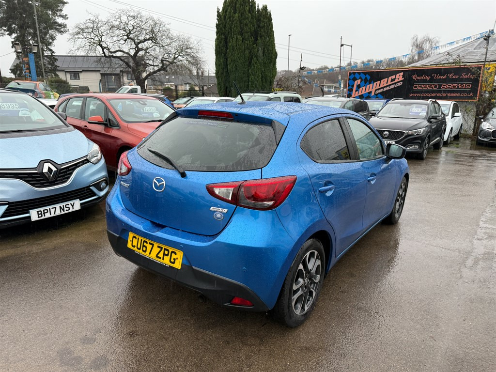 Mazda Mazda2 1.5 Tech Edition in metallic blue. An absolutely gorgeous example here, looks and drives like a car that's covered half the miles. Clearly a very well cared for car. This 2017 model is equipped with an impressive range of technology that enhances both comfort and convenience. Comes with Cruise Control, Climate Control, Sat-Nav, Parking Sensors, USB, Bluetooth Hands Free, Bluetooth Audio Streaming, DAB Radio, USB, A/C, Alloy Wheels etc. Don't miss out on this fantastic opportunity to own a Mazda2 that blends style, safety, and comfort seamlessly. Contact us to book a test drive today or call 02920885149. 12v Socket,Adjustable Steering Wheel,Air Conditioning,Alarm,Alloy Wheels,Anti Lock Brakes,Auto On Headlights,Aux Input,Bluetooth Audio Streaming,Bluetooth Telephone Hands Free,CD Radio,Central Locking,Cloth Upholstery,Cruise Control,Cupholders,DAB Radio,Driver Airbag,Electric & Heated Door Mirrors,Front & Rear Electric Windows,Front Fog Lights,Fuel Computer,Height Adjustable Drivers Seat,Immobiliser,ISOFIX,Keyless Start,Metallic Paint,Multiple Airbags,Passenger Airbag,Power Assisted Steering,Remote Central Locking,Satellite Navigation,Rear Parking Sensor,Split Folding Rear Seats,Traction Control,Trip Computer,Tyre Pressure Monitor,USB