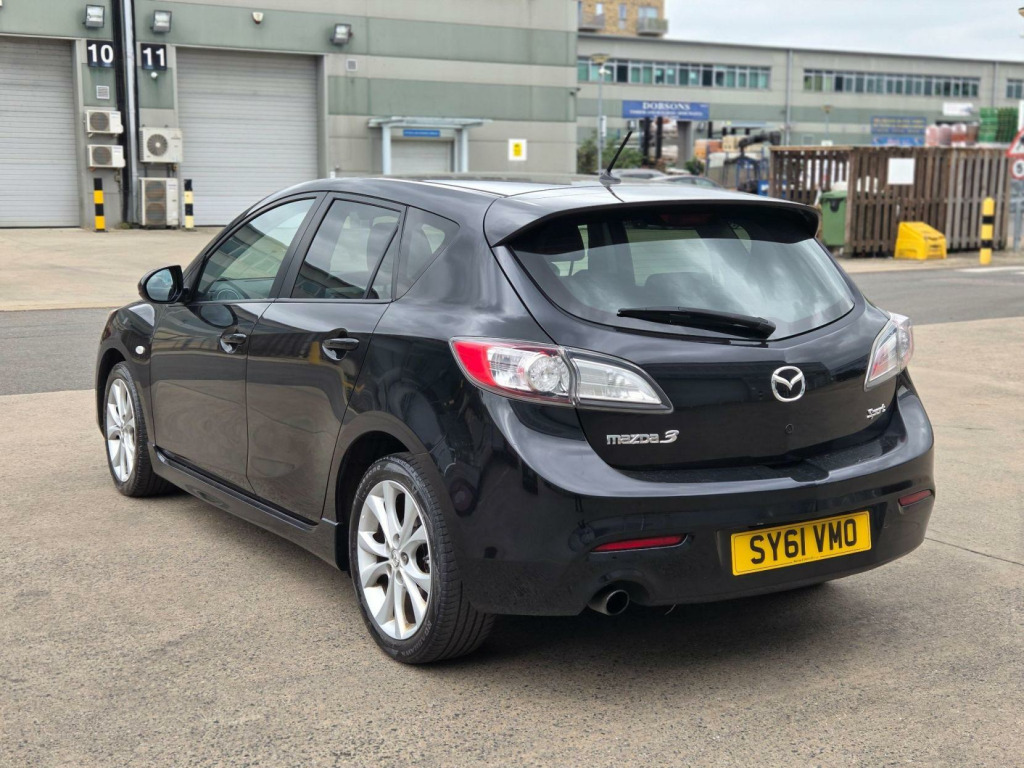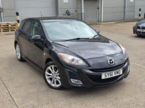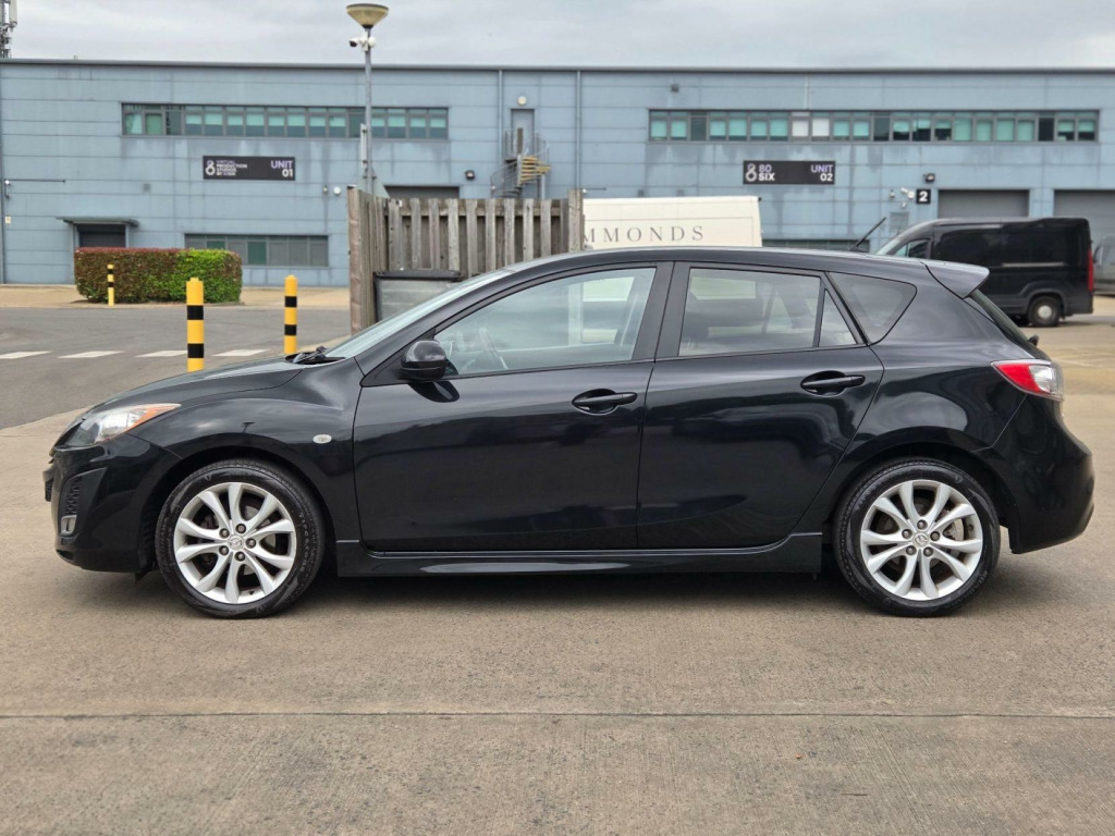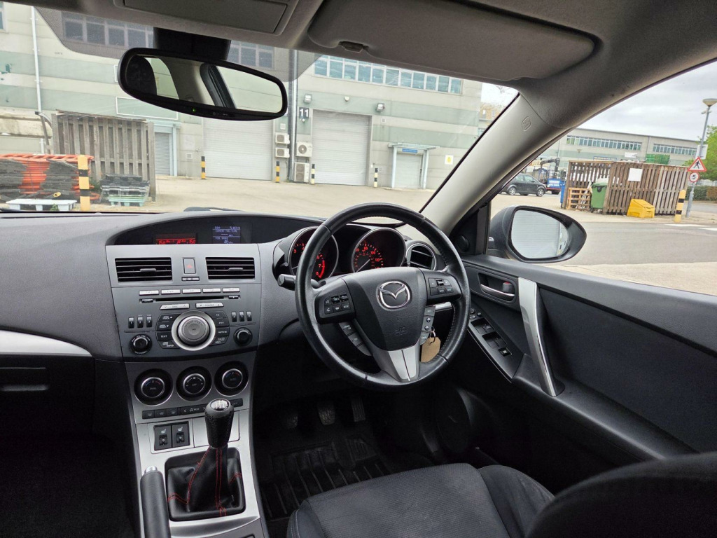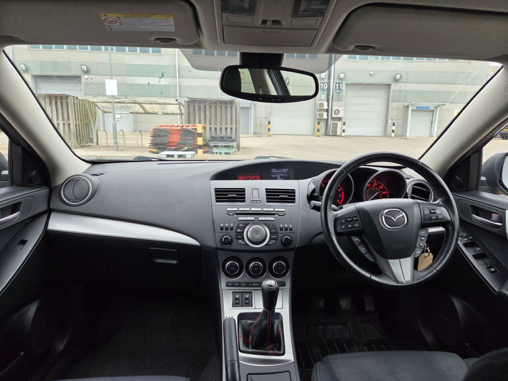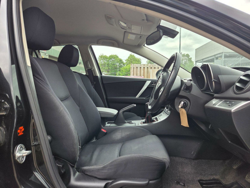 Selekt Motors Presents this STUNNING Mazda 3 in Black with only 1 OWNER FROM NEW AMD FULL SERVICE HISTORY FROM MAZDA!!! This car has huge specs, kept in great condition, Drives very smoothly and super comfortable to be in! Very good condition, well looked after. ? 1 OWNER FROM NEW!!! ? FULL MAZDA SERVICE HISTORY? HEATED SEATS ? Bose SPEAKERS ? 2 KEYS   ? Long MOT  ? Space Saver  Wheel   ? Air conditioning? Climate Control ? Privacy Glass? Comes with Warranty packagesFor more information give us a call  v power socket - centre armrest, 17in alloy wheels, aux socket, air conditioning - dual zone climate control, airbags - curtain front and rear, airbags - driver, airbags - front passenger, anti lock braking system - 4w-abs, armrest - rear, audio systems - am-fm radio-premium bose surround sound with audiopilot-6cd changer-speakers x10, auto dimming rear view mirror, black out finish dials with red-blue illumination, bluetooth hands free phone kit and mobile mp3 player control system, bumpers - body coloured, central locking, cruise control, dsc - dynamic stability control, digital clock, door handles - body coloured, door inner handles - front and rear bright, door mirrors - electrically adjustable-heated-folding-body coloured, door pockets - front, dusk sensing automatic headlights, eba - emergency brake assist, ebd - electronic brakeforce distribution, esp - electronic stability control, electric windows - front and rear with one touch auto up and down on drivers side, emergency puncture repair kit, emergency stop signalling system - ess, front centre console with storage box two lidded cup holders, front fog lights, front side airbags, gear knob - leather, glovebox illumination, grab handles - front passenger and two rear with coat hooks, head restraints - active front, headlights - halogen, headlights - reminder, heated front windscreen, heater ducts - rear, high mounted stop light, isofix child seat anchorage for outer rear seats, keyless entry - smart with engine start/stop button, mazda advanced impact distribution and absorption system - maidas, multi information display inc trip computer-digital tachometer-fuel water-exterior temp gauges, overhead console with sunglassess holder, pollen filter, power steering, privacy glass - rear and rear side windows, rain-sensing front wipers, rear lights - led, rear parking sensors, remote central door locking with two jackknife type retractable keys and deadlocking, scuff plates - front and rear, seatback pocket - passenger side, seats - 60-40 split folding rear, seats - drivers dial reclining and height adjustment, seats - drivers lumbar adjustment, seats - front heated, seats - front sports bucket, space saver spare wheel, spoiler - rear roof body coloured, sports styling kit with side airdam skirts and rear spoiler, steering wheel - height adjustment, steering wheel - leather, steering wheel - mounted remote audio controls, sunvisors - drivers and passengers with covered vanity mirror-ticket holder-illumination, tcs - traction control system, thatcham category 1 alarm and immobiliser, welcome mode lighting - enhanced door assist grip illumination