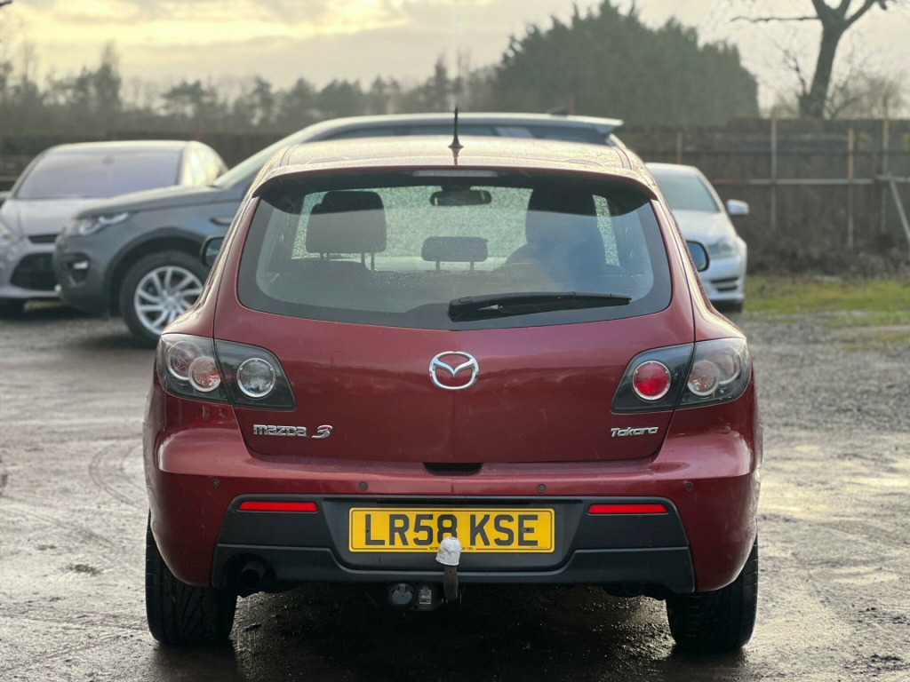 This 2008 Mazda3 Takara presents a wonderful ownership proposition, having been looked after by only three previous owners. Under the bonnet, you'll find a reliable 1.6 litre petrol engine, offering a balanced blend of performance and efficiency. As a Takara model, this Mazda3 comes with a good level of specification, ensuring a comfortable and enjoyable driving experience.The Mazda3 Takara is a practical choice for everyday life, boasting a surprisingly large boot space that can easily accommodate shopping, luggage, or sports equipment. Furthermore, its placement in a low insurance group makes it an economical option for many drivers, potentially saving you money on your annual motoring costs. These factors combined indicate that this Mazda3 offers excellent value and practicality compared to other vehicles in its class. in alloy wheels with 205/55 r16 tyres, 4 speakers, 60/40 split fold down rear seats, am/fm modular radio with mp3 compatible single cd player and 6-disc autochanger with aux jack, alarm (thatcham category 1), anti-lock braking system (abs) with emergency brake assistance, automatic climate control, body colour front and rear bumpers, body-coloured bodyside mouldings, centre rear seat belt, deadlocking, digital clock, digital exterior temperature thermometer, driver airbag, drivers dial reclining and height adjustment, drivers lumbar adjustment, drivers and passengers illuminated sunvisors with covered vanity mirror and ticket holder, electrically adjustable and heated door mirrors, electronic brake-force distribution (ebd), front centre console with storage box, front fog lights, front passenger airbag, front side airbags and front and rear curtain airbags, front and rear electric windows, front, 3-point (elr) x 2 with pre-tensioner and load-limiters, head restraints - front/rear, heated rear screen, high-mounted rear brake light, isofix child seat anchorage attached to outer rear seats, illuminated front ashtray and cigarette lighter, immobiliser system (thatcham category 1), leather-covered gear knob, leather-wrapped steering wheel, lockable glovebox with illumination, power steering, rear centre armrest, rear wiper with intermittent wipe, remote central locking, roof spoiler, steering wheel with tilt and height adjustment, steering wheel-mounted remote audio controls, temporary size spare wheel, trip computer, two lidded cup holders, upholstery cloth - black/red cloth