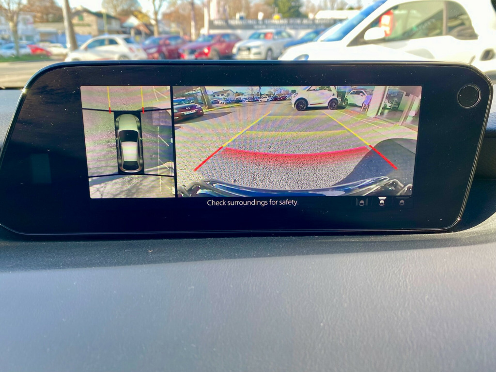 in alloy wheels - grey metallic, bumper - front body coloured with black lower bezel, bumper - rear gloss black lower moulding, door mirrors - electrically adjustable-heated-auto power-folding, door mirrors with adjustable memory and tilt-down function when reversing, door mirrors with auto dimming function, electric windows - front and rear with one-touch auto down - up, emergency tyre repair kit, grille - dark metallic finish signature wing, grille - gloss black finish, privacy glass - rear and rear side windows, rear roof spoiler - gloss black, 360 degree view monitor, blind spot monitoring with rear cross traffic alert, colour active driving display - colour head-up display, driver attention alert - daa, driver monitor, electric power assisted steering - epas, intelligent speed assist, mazda radar cruise control, multimedia commander, parking sensors - front and rear, smart brake support - rear crossing, trip computer, tyre pressure monitoring system, 7in colour tft display, 8.8in tft colour centre display, am-fm-dab radio-mp3 featuring 12 speaker bose surround sound system, apple carplay and android auto, electrical power outlet, integrated bluetooth, luggage compartment - power outlet, satellite navigation system, usb charging port, e-call with gps, abs - anti lock braking system, dsc - dynamic stability control, dual front airbags, electronic parking brake with auto-disengage function - auto-hold function, emergency stop signalling system - ess, front cross traffic alert - fcta, front knee airbag for driver, front passenger airbag cut-off switch, front side airbags, front and rear curtain airbags, front and rear smart city brake support, g-vectoring control plus - gvc plus, hill launch assist - hla, isofix child seat anchorage for outer rear seats, lane keep assist with lane departure warning system, remote central locking with deadlocking and automatic door lock when driving, seatbelt reminder audible warning - driver-passenger and rear seat, seatbelts - front - 3 point - elr x 2 with pre-tensioners, seatbelts - rear - 3-point - elr, smart keyless entry, tcs - traction control system, thatcham accredited alarm and immobiliser, wipers - rear adjustable speed with intermittent, chrome interior trim accents - steering wheel centre bezel - surround start-stop and glove box handle, cruising traffic support - cts, door pockets - driver - front passenger and rear, door trim - vinyl leather, drivers seat - power slide - recline - height and lumbar adjustment with head up display and mirror memory, dual-zone climate control air conditioning, engine start-stop button, frameless auto dimming rear view mirror, gear shift - leather-wrapped, glovebox with light, grab handles - front passenger and two rear with coat hooks, interior led lighting, luggage compartment - light, rain-sensing front wipers, rear fog light, rear seats - folding centre armrest equipped with two cup holders, roof mounted sunglasses holder, seatback pocket - passenger side, seats - 60-40 split folding rear, seats - front passenger manual slide - recline and height adjustment, steering wheel - heated, steering wheel - leather wrapped, steering wheel - mounted audio and bluetooth controls, steering wheel - tilt and height adjustment, storage spaces - front centre console with two cupholders, sunvisors - drivers and passengers with covered vanity mirror-ticket holder, three height adjustable rear head restraints, daytime running lights, headlights - adaptive led, headlights - coming-leaving home, headlights - dusk-sensing lights, headlights - led with auto headlight levelling, high beam control, signature led lights, signature led rear combination lights with led rear turn lights