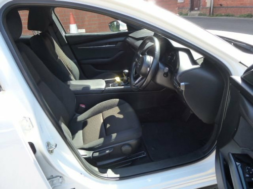 This 2022 Mazda3 e SKYACTIV G SE L offers exceptional provenance, having been owned by just one person and boasting a low mileage of 21,399 miles for its age. This Euro 6 compliant 2.0 litre petrol model comes with a clear vehicle history check, providing peace of mind.  Inside, you'll find a host of convenient features including integrated Bluetooth for seamless connectivity, rear parking sensors to aid manoeuvring, and a colour active driving display which presents key information clearly.  The SE L trim also benefits from blind spot monitoring with rear cross traffic alert, enhancing safety, and dusk sensing headlights that automatically adjust to lighting conditions.  The Mazda3 is designed to offer a rewarding driving experience, with a respectable 0-60mph time of 10.4 seconds. Its low insurance group rating indicates that running costs are kept manageable, making it an attractive option for many drivers. Furthermore, the generous boot space ensures practicality for everyday needs and longer journeys, setting it apart from many similar vehicles. 12V Electrical Power Outlet, 16in Alloy Wheels - Silver, 2 USB Charging Ports, 7in Colour TFT Display, 8.8in TFT Colour Centre Display, ABS - Anti Lock Braking System, Air Conditioning - Manual, Airbags - Front Dual Stage Driver and Si, AM-FM-DAB Radio with 8 Speakers, Apple CarPlay and Android Auto, B-Pillar Garnish - Satin Black, Blind Spot Monitoring with Rear Cross Tr, Bumper - Front Body Coloured with Black , Bumper - Rear Colour Coded with Gloss Bl, Colour Active Driving Display - Colour H, Door Mirrors - Electrically Adjustable-H, Door Pockets - Driver - Front Passenger , Door Trim - Black Cloth Insert, Driver Attention Alert - DAA, DSC - Dynamic Stability Control, Dual Tailpipe - Chr