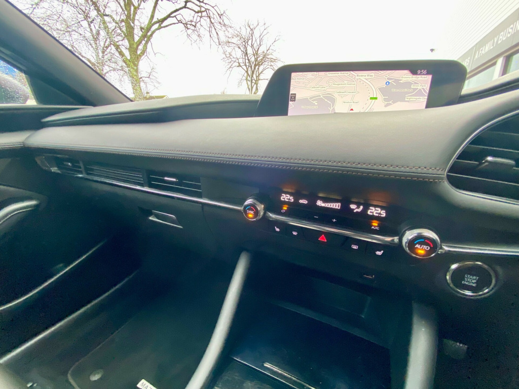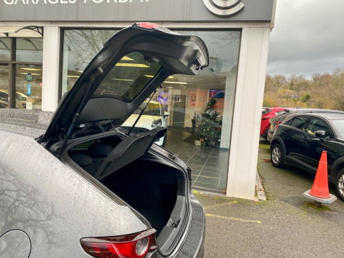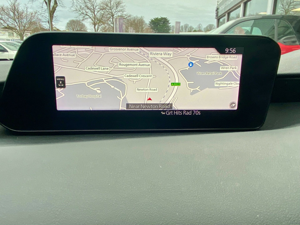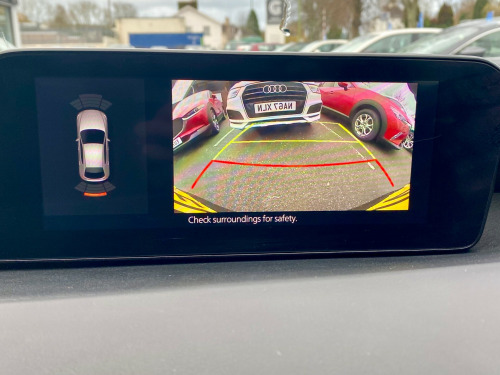 in alloy wheels - grey metallic, bumper - front body coloured with black lower bezel, bumper - rear gloss black lower moulding, door mirrors - electrically adjustable-heated-auto power-folding, door mirrors with auto dimming function, electric windows - front and rear with one-touch auto down - up, emergency tyre repair kit, grille - dark metallic finish signature wing, grille - gloss black finish, privacy glass - rear and rear side windows, rear roof spoiler - gloss black, 7in colour tft display, 8.8in tft colour centre display, am-fm-dab radio with 8 speakers, apple carplay and android auto, electrical power outlet, integrated bluetooth, luggage compartment - power outlet, satellite navigation system, usb charging port, e-call with gps, abs - anti lock braking system, dsc - dynamic stability control, dual front airbags, electronic parking brake with auto-disengage function - auto-hold function, emergency stop signalling system - ess, front knee airbag for driver, front passenger airbag cut-off switch, front side airbags, front smart city brake support, front and rear curtain airbags, g-vectoring control plus - gvc plus, hill launch assist - hla, isofix child seat anchorage for outer rear seats, lane keep assist with lane departure warning system, remote central locking with deadlocking and automatic door lock when driving, seatbelt reminder audible warning - driver-passenger and rear seat, seatbelts - front - 3 point - elr x 2 with pre-tensioners, seatbelts - rear - 3-point - elr, smart keyless entry, tcs - traction control system, thatcham accredited alarm and immobiliser, wipers - rear adjustable speed with intermittent, blind spot monitoring with rear cross traffic alert, colour active driving display - colour head-up display, driver attention alert - daa, electric power assisted steering - epas, intelligent speed assist, mazda radar cruise control, multimedia commander, parking sensors - front and rear, reversing camera, trip computer, tyre pressure monitoring system, chrome interior trim accents - steering wheel centre bezel - surround start-stop and glove box handle, door pockets - driver - front passenger and rear, door trim - cloth, dual-zone climate control air conditioning, engine start-stop button, frameless auto dimming rear view mirror, gear shift - leather-wrapped, glovebox with light, grab handles - front passenger and two rear with coat hooks, interior led lighting, luggage compartment - light, rain-sensing front wipers, rear fog light, rear seats - folding centre armrest equipped with two cup holders, roof mounted sunglasses holder, seatback pocket - passenger side, seats - 60-40 split folding rear, seats - drivers manual slide-recline height and tilt adjustment, seats - front passenger manual slide - recline and height adjustment, steering wheel - leather wrapped, steering wheel - mounted audio and bluetooth controls, steering wheel - tilt and height adjustment, storage spaces - front centre console with two cupholders, sunvisors - drivers and passengers with covered vanity mirror-ticket holder, three height adjustable rear head restraints, daytime running lights, headlights - adaptive led, headlights - coming-leaving home, headlights - dusk-sensing lights, headlights - led with auto headlight levelling, high beam control, signature led lights, signature led rear combination lights with led rear turn lights
