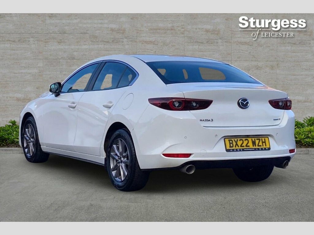 This 2022 Mazda3 e-SKYACTIV-X SE-L Lux boasts a full service history, with its last service completed on 2025-10-07 at 57,435 miles, offering excellent provenance. This Euro 6 compliant 2.0L petrol model comes with MOT valid until May 2026 and a 3 month warranty for your peace of mind. It has had only one owner since new. Inside, you'll find a suite of convenient features including Apple CarPlay and Android Auto integration, a reversing camera for easier parking, smart keyless entry, a colour active driving display for essential information, and integrated Bluetooth for seamless connectivity.  Peace of Mind Package: - Last service completed in October 2025 @ 57.435 miles -  MOT Valid until May 2026 - 3 Months Comprehensive Warranty ? Included FREE - 3 Months Roadside Assistance ? Included FREE  The Mazda3 SE-L Lux stands out with its impressive fuel economy, achieving a highlight of 57 mpg, which is better than many similar vehicles. Furthermore, its low insurance group and low CO2 emissions indicate it is more economical to run and own compared to other cars in its class. This combination of efficiency, technology, and careful ownership makes this Mazda3 a compelling choice.  Buy Your Next Car Your Way! Reserve online for just ?100, pay in full, or apply for tailored finance. We welcome part exchanges with competitive valuations and offer a 14-day money-back guarantee plus nationwide delivery.  Explore our wide range of vehicles or request a personalised video. *Unaccompanie 16in Alloy Wheels - Silver Metallic, 7in Colour TFT Display, 8.8in TFT Colour Centre Display, ABS - Anti Lock Braking System, AM-FM-DAB Radio with 8 Speakers, Apple CarPlay and Android Auto, Auto Dimming Rear View Mirror, Blind Spot Monitoring with Rear Cross Tr, Bumper - Front Body Coloured with Black , Colour Active Driving Display - Colour H, DSC - Dynamic Stability Control, Daytime Running Lights, Door Mirrors - Electrically Adjustable-H, Door Mirrors with Auto Dimming Function, Door Pockets - Driver - Front Passenger , Door Trim - Cloth, Driver Attention Alert - DAA, Dual Front Airbags, Dual-Zone Climate Control Air Conditioni, Electric Power Assisted Steering - EPAS, Electric Windows -